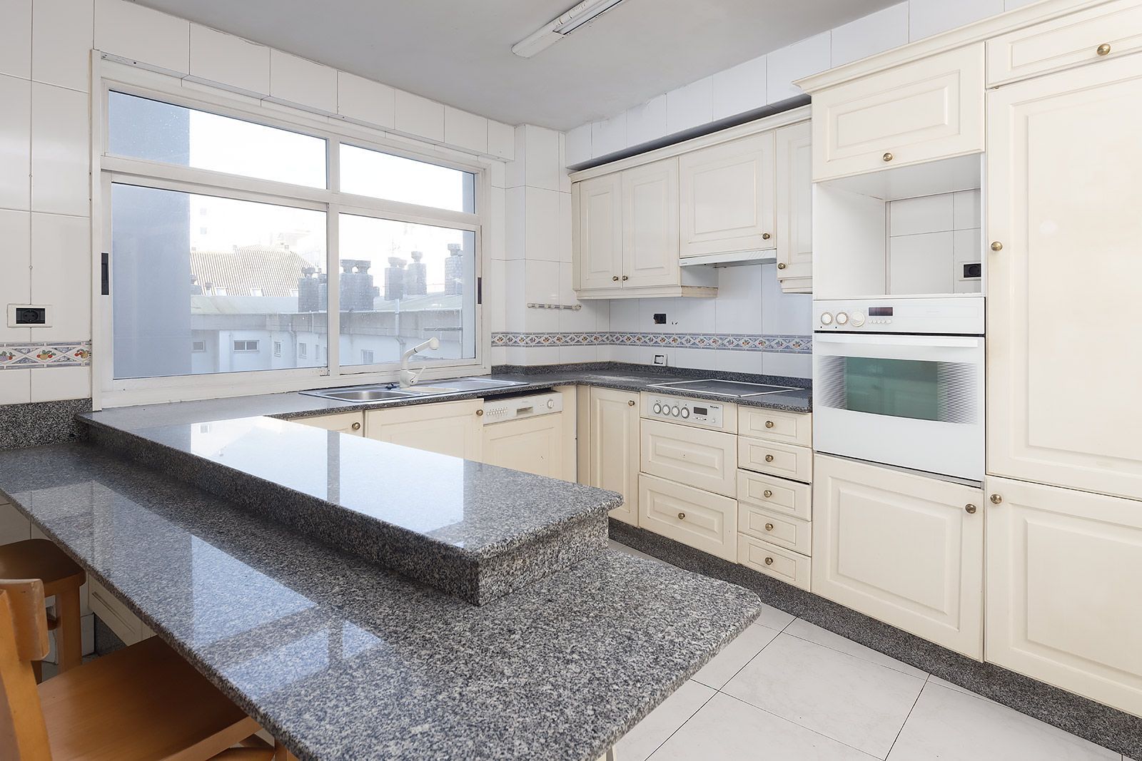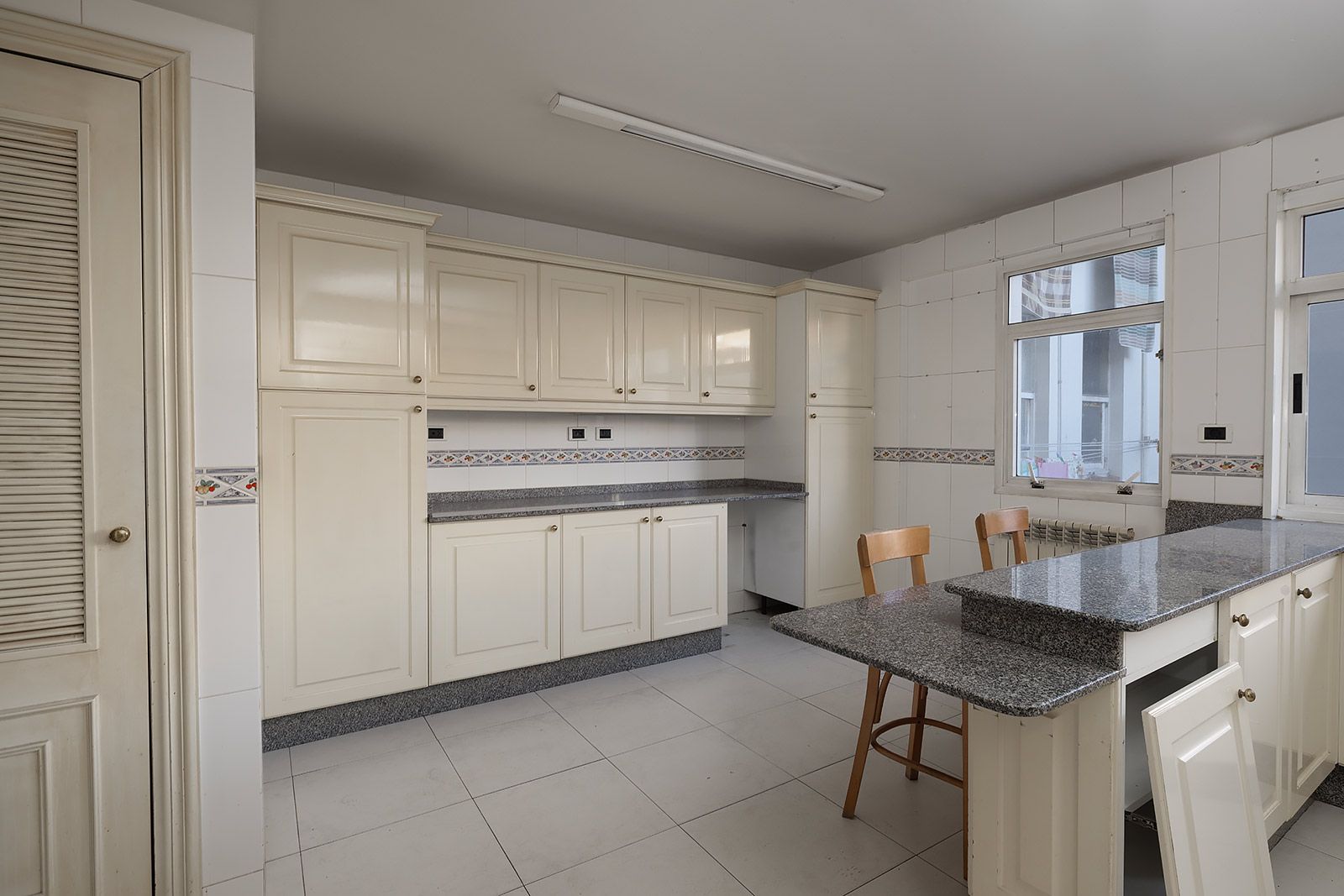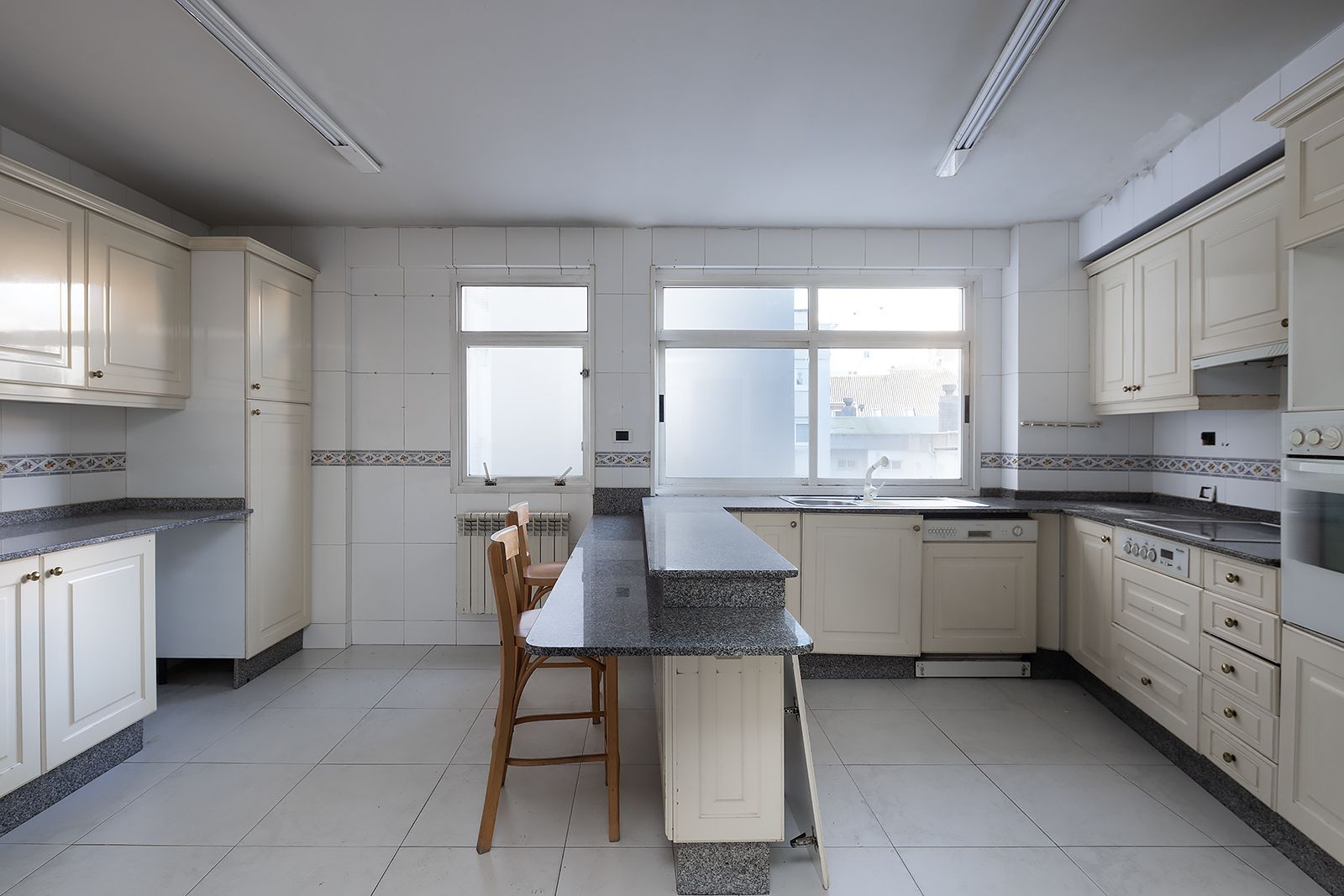 Piso de 170 m2 construidos que se distribuyen en un cómodo hall de entrada con armarios que da acceso a su espectacular cocina de más de veinte metros, luminosa y con grandes ventanales a un amplio patio, con amplias superficies de almacenaje y trabajo, barra comedor y despensa.