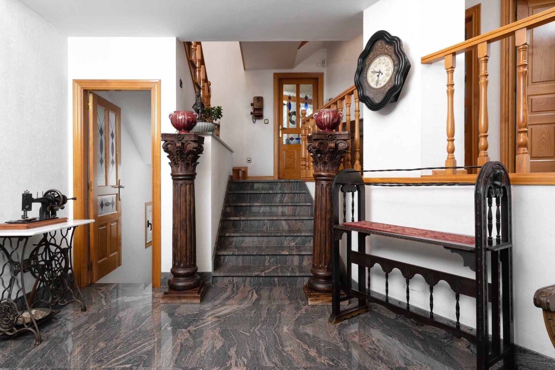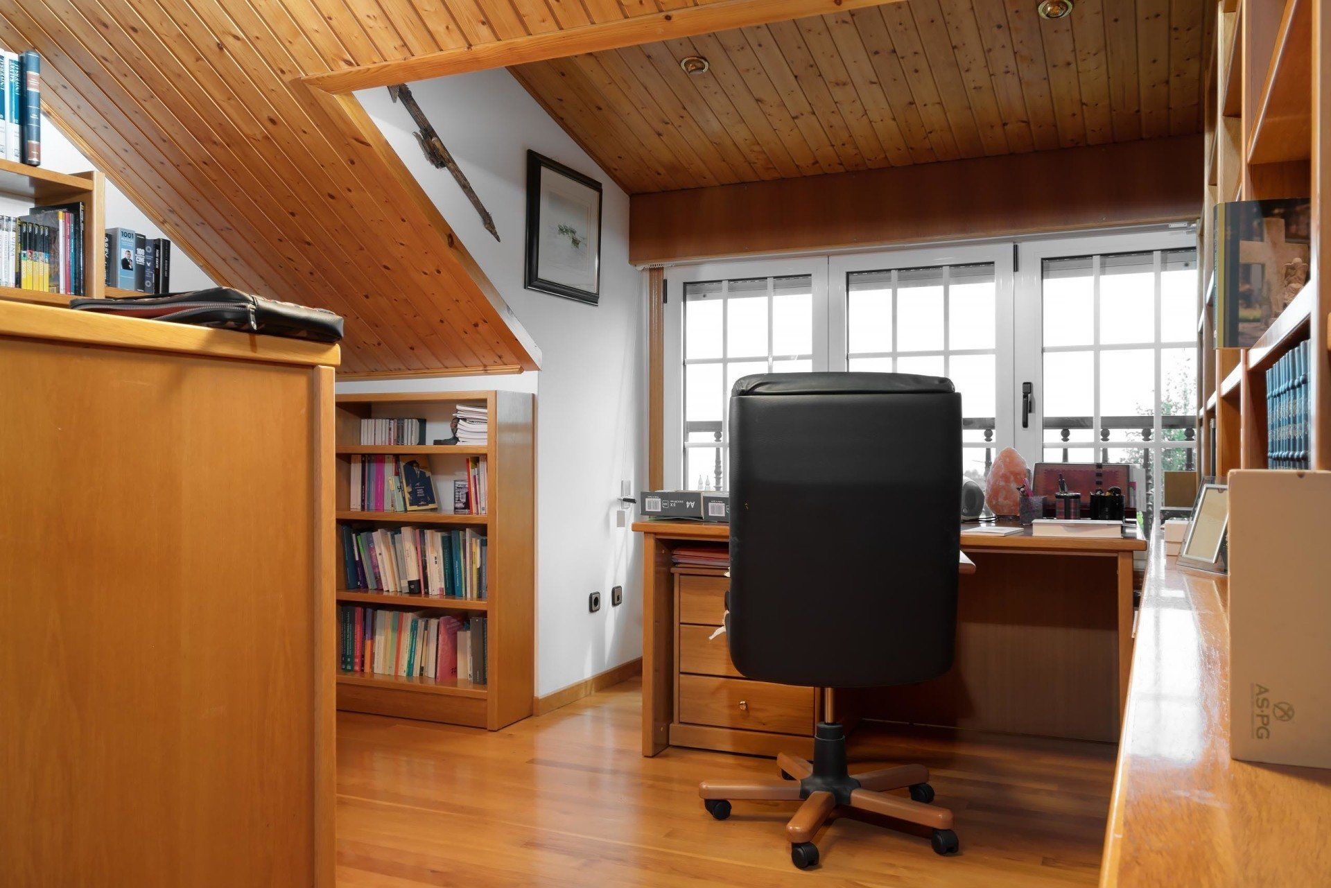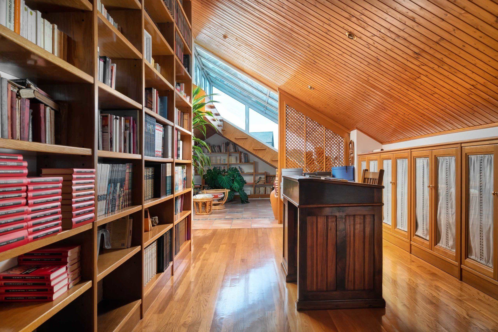 En la segunda planta nos encontramos otras 3 habitaciones, con dos baños completos, uno en suite en el dormitorio principal y otro con bañera de hidromasaje en el pasillo. En esta misma planta encontramos una espectacular biblioteca de 80 m2 con zona de despacho y amplio solarium.