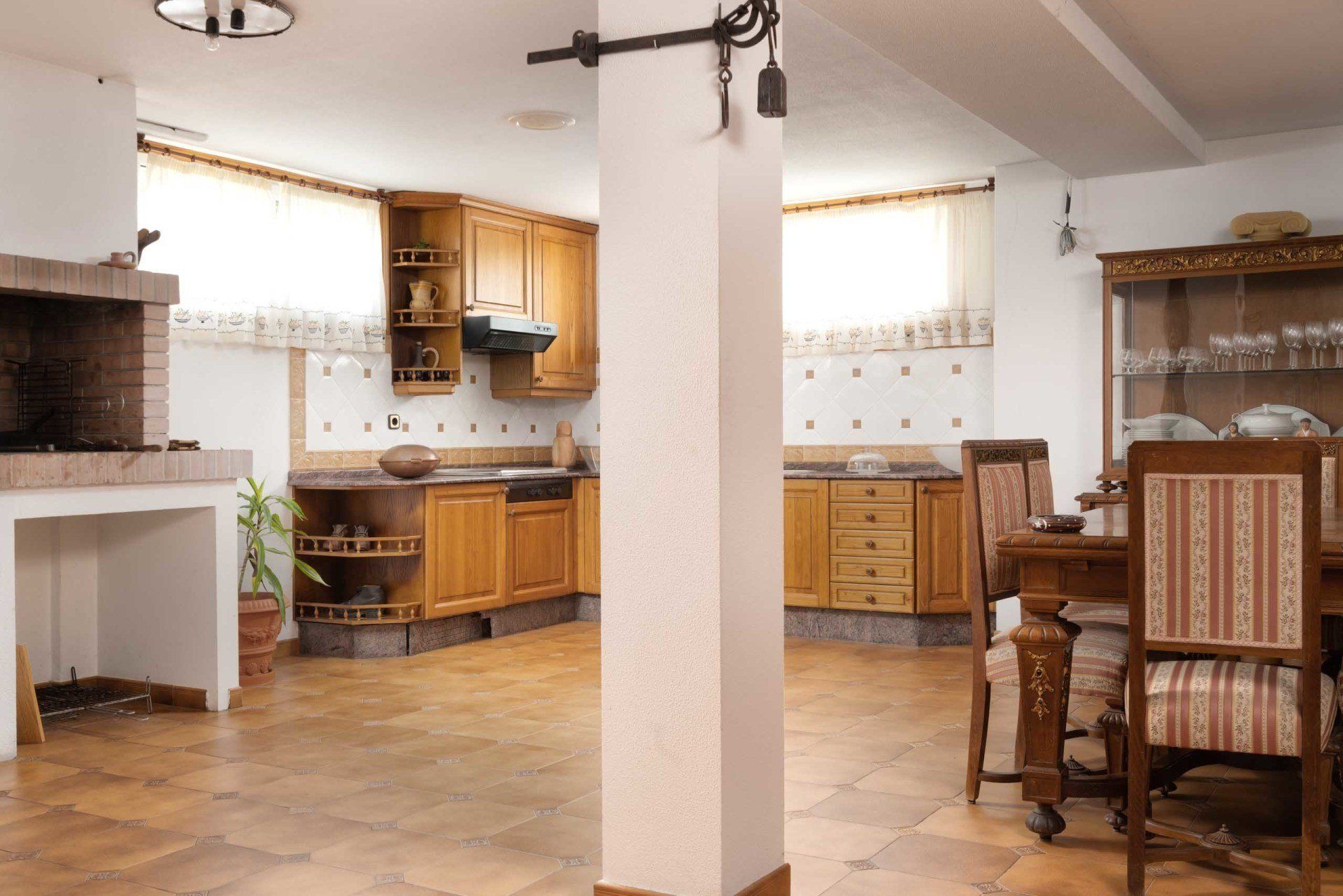 En el sótano nos encontramos un garaje con capacidad para dos vehículos, una cocina-comedor con chimenea-barbacoa, baño completo, zona de despensa/trastero y una zona de lavadero-tendedero muy amplio.