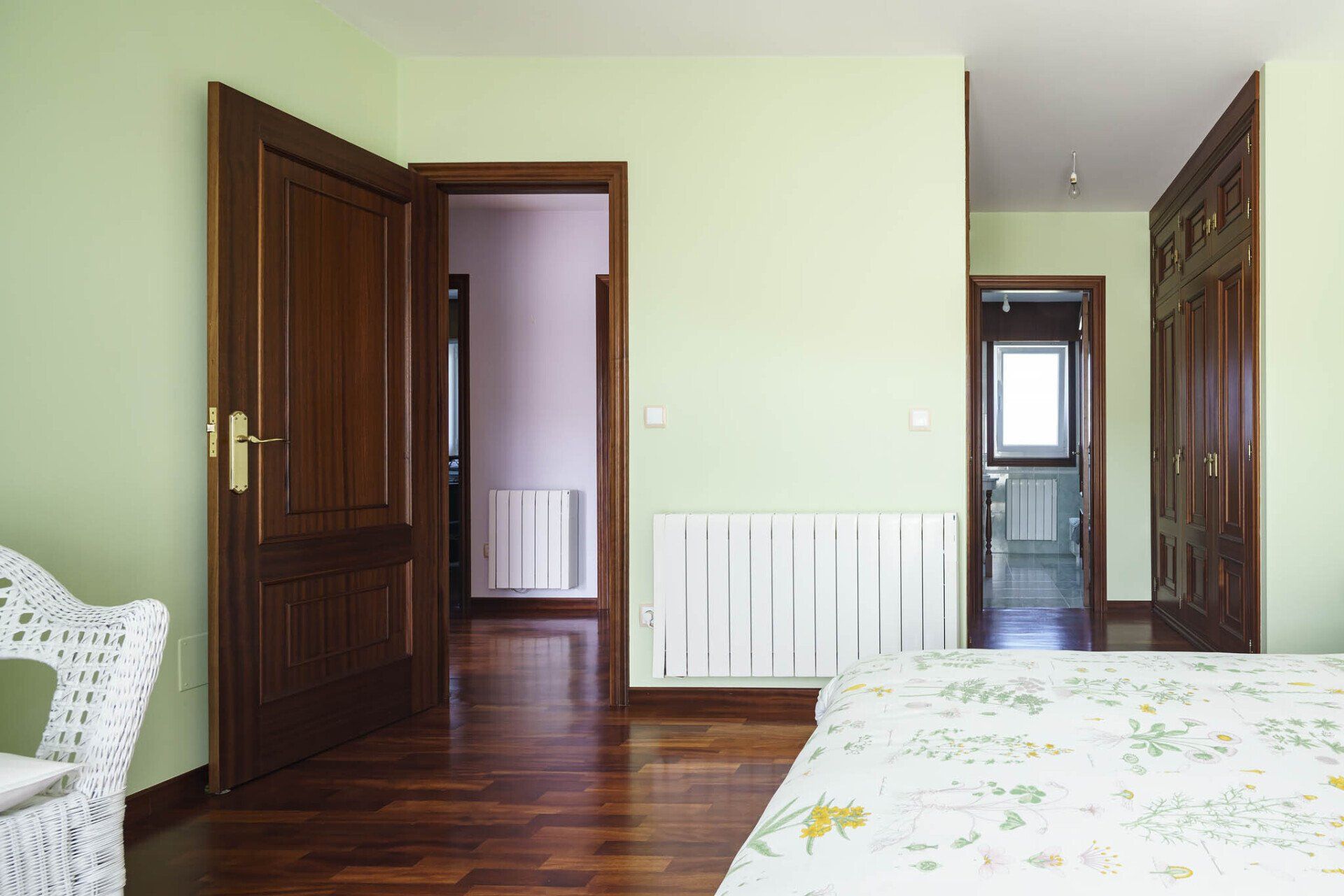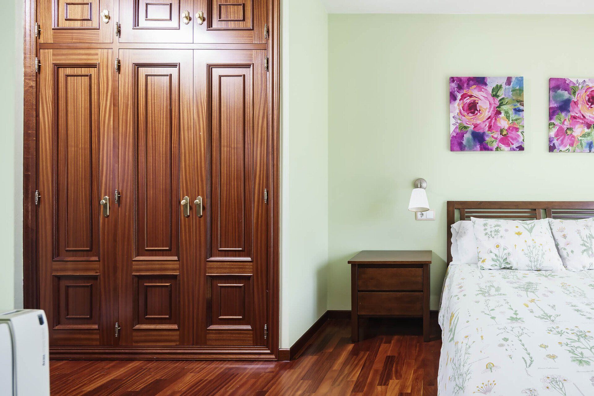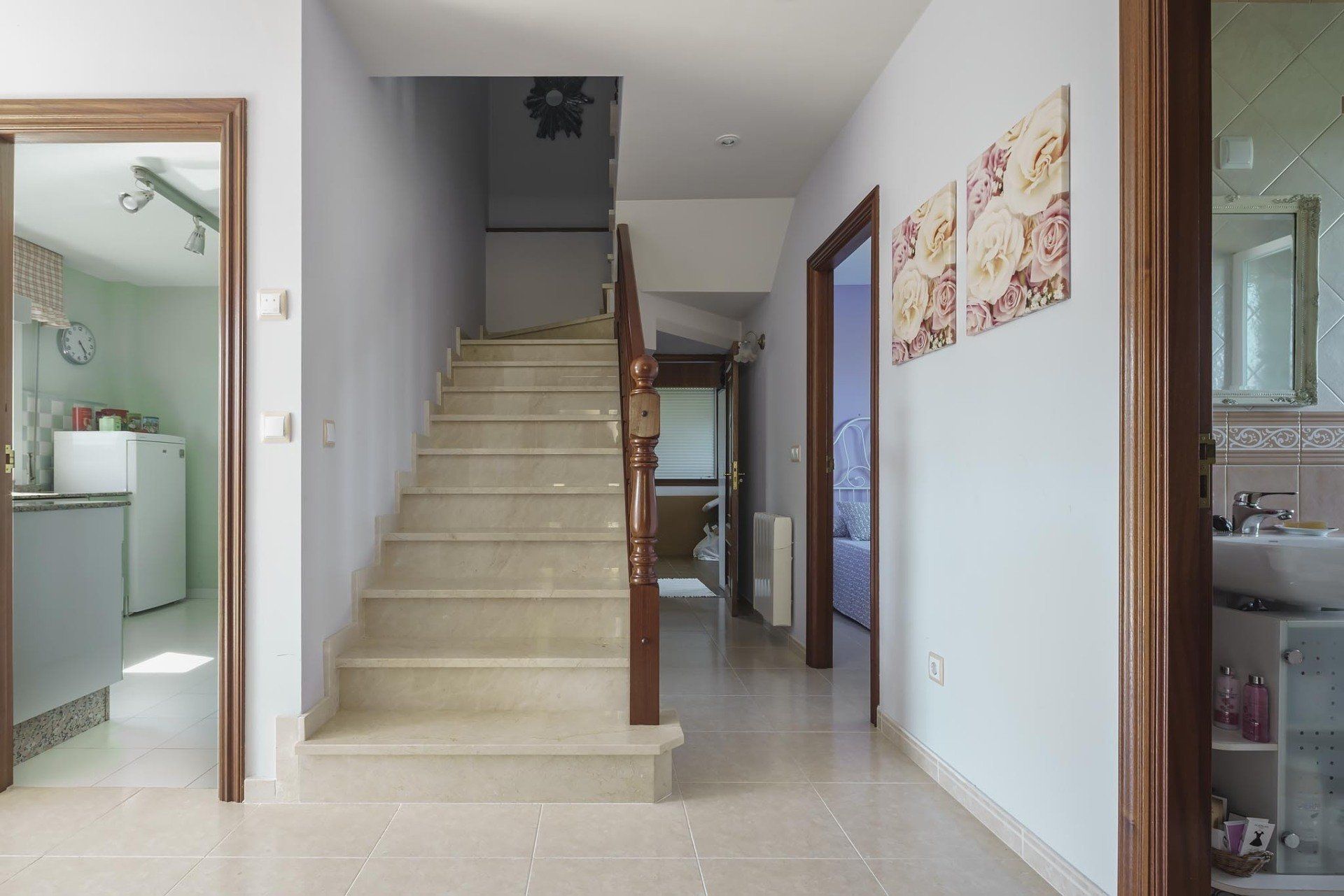La vivienda se distribuye en planta baja en cocina totalmente equipada, salón en dos ambientes, aseo y una habitación, además de un garaje cubierto amplio. En la segunda planta nos encontramos con 3 habitaciones (una de ellas utilizada hoy como despacho) y 2 aseos, uno de ellos perteneciente a la habitación principal con configuración en suite y armarios empotrados de gran tamaño. En esta segunda planta también hay una zona de trastero totalmente independiente donde se encuentra instalada la caldera de gasoil que dota de calefacción y ACS a la vivienda.