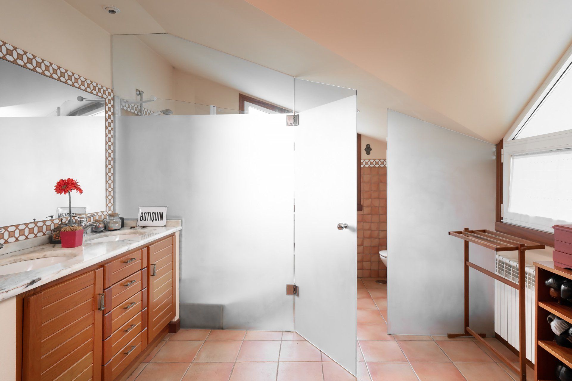 A una de las habitaciones de la planta baja se accede directamente desde el exterior, lo que posibilita la utilización de la misma como habitación de invitados, o como despacho de un profesional independiente, sin perturbar la vida familiar.