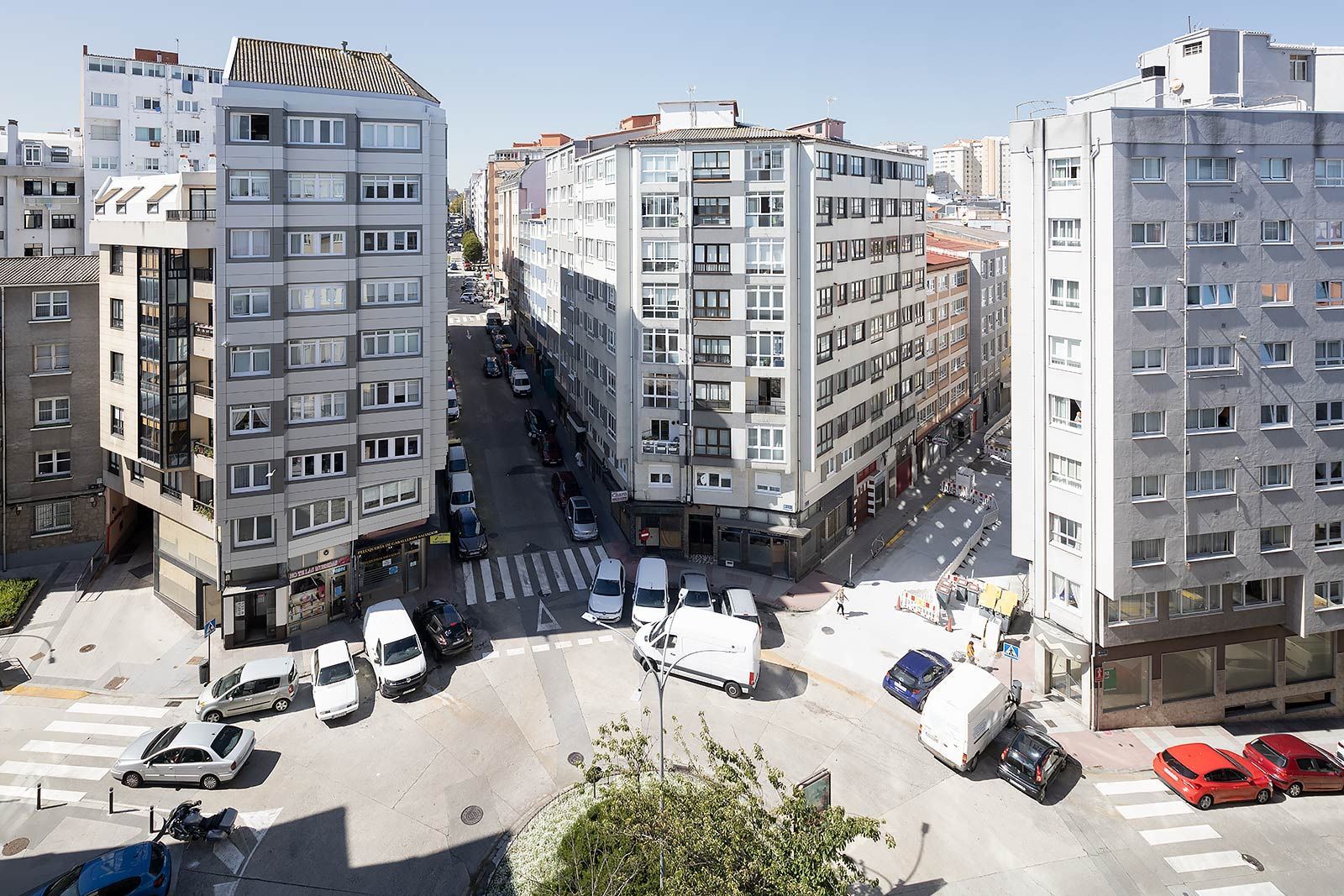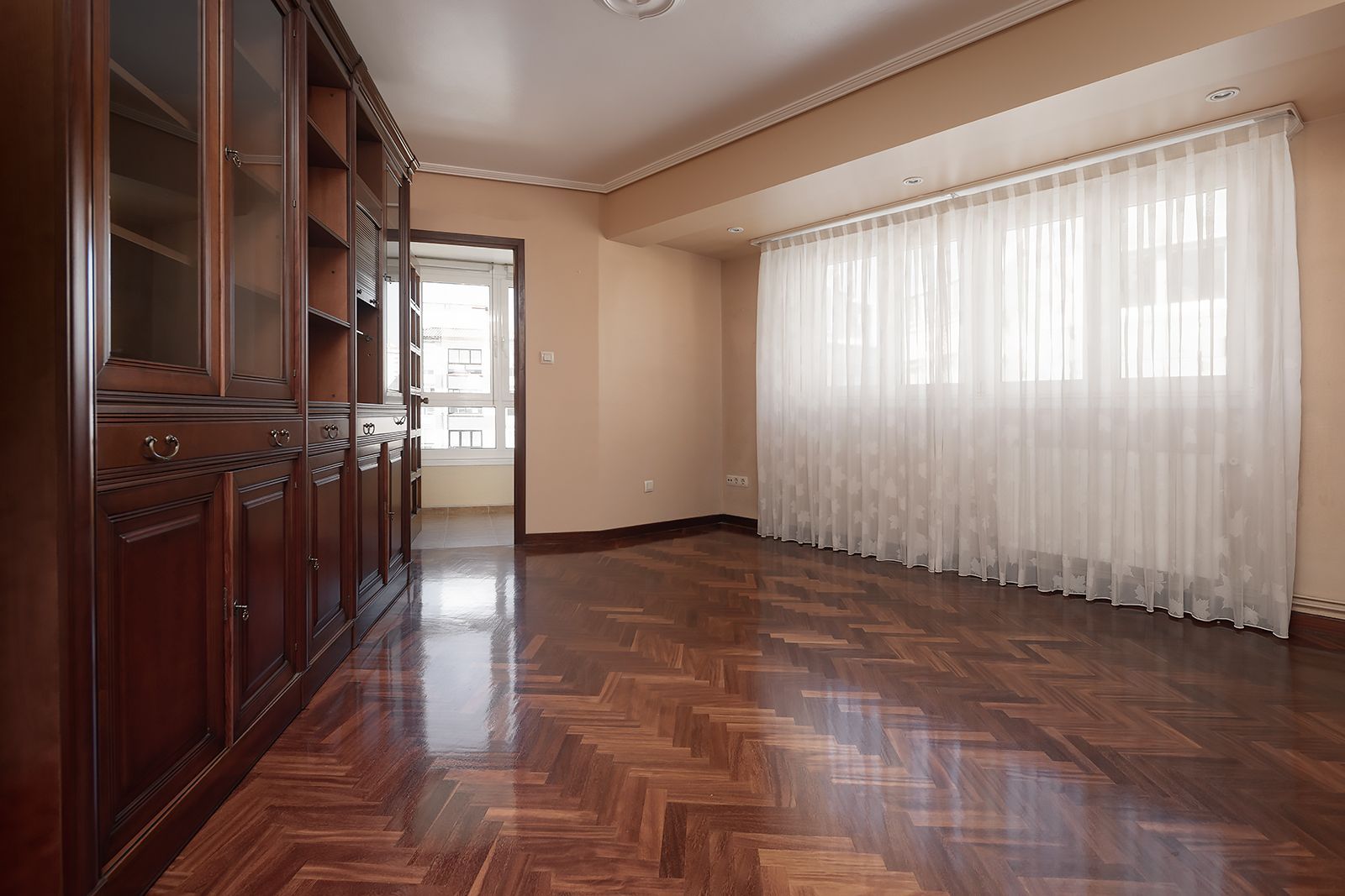 Piso en muy buen estado de conservación con 115 m2 de superficie distribuida en salón comedor con sol toda la tarde, cocina independiente amueblada y equipada, cuatro dormitorios exteriores y dos baños completos, además de una lavandería con ventana a patios. Suelos de madera en perfecto estado, calefacción individual de gas, puerta de seguridad, ventanas renovadas oscilo batientes con climalit, etc. que permiten habitar esta agradable, tranquila y soleada vivienda de manera inmediata. Su ubicación en la plaza de Comercio, la conecta con el centro o la salida de la ciudad a través de las rondas de Nelle y Outeiro de manera inmediata, disfrutando además en las inmediaciones de todos los servicios urbanos.