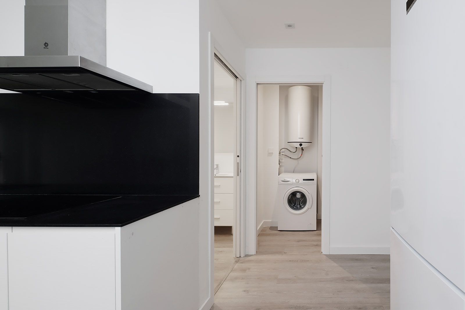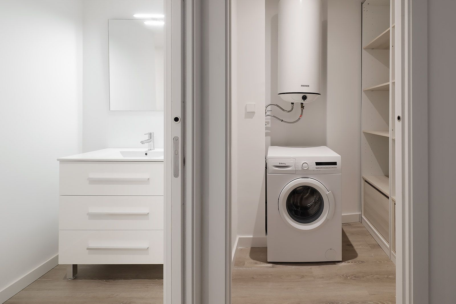 Amplio y luminoso apartamento con salón comedor de gran tamaño a calle San Pedro, cocina completamente amueblada y equipada, con lavandería anexa, baño con plato de ducha de gran formato y dormitorio con luces a patio de manzana con pequeño patio-tendedero exterior.