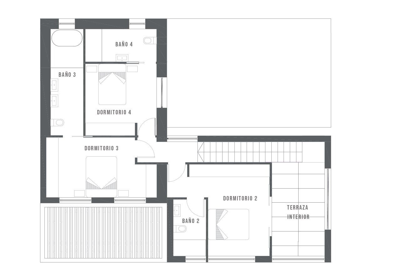 La vivienda cuenta con tres habitaciones en planta primera, todas ellas con baño propio y armario empotrados.