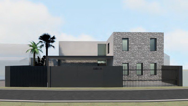 La vivienda original mantiene su estructura y aperturas. En el alzado principal priorizamos la privacidad hacia la calle, creando muros opacos y pequeñas ventanas. El metal, la piedra y la madera son los materiales principales en el diseño.