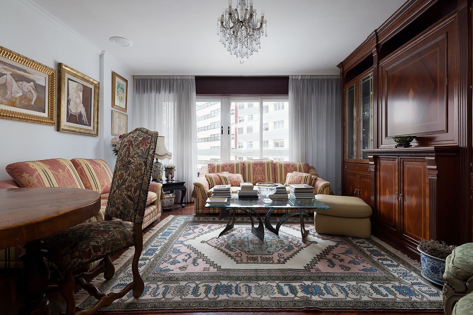 Vivienda de 124 m2 construidos en quinta planta exterior de edificio con fachada a la Avda. de Fernández Latorre, al lado de la plaza de 4 Caminos y el Corte Inglés, a cinco minutos del centro de la ciudad.