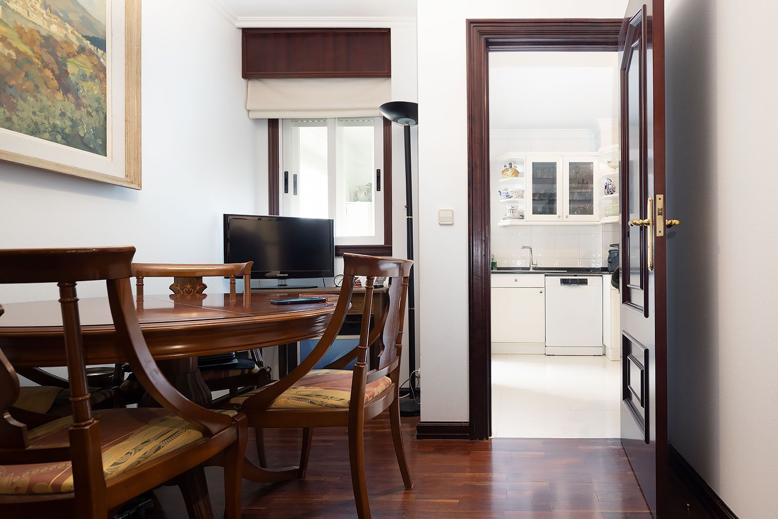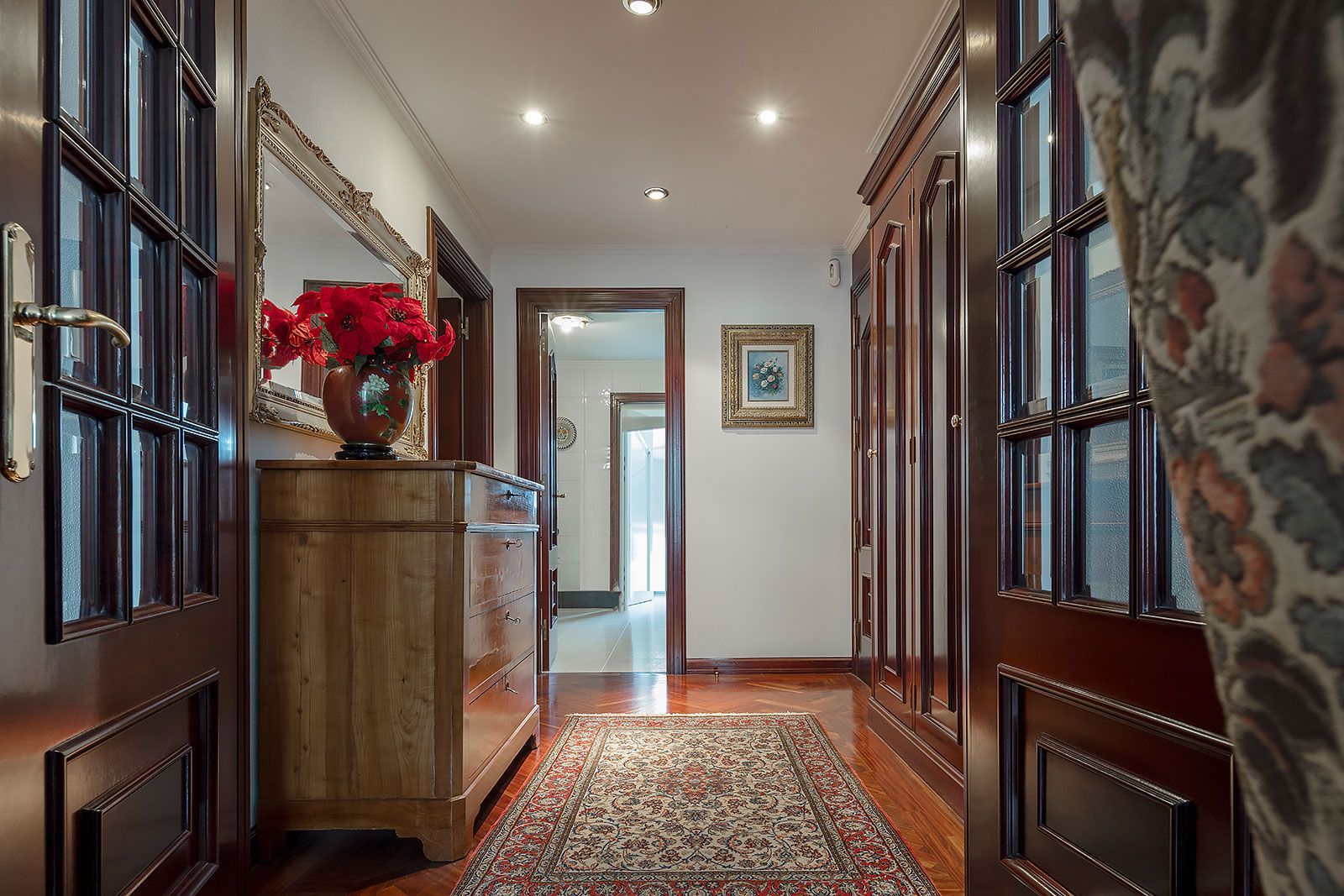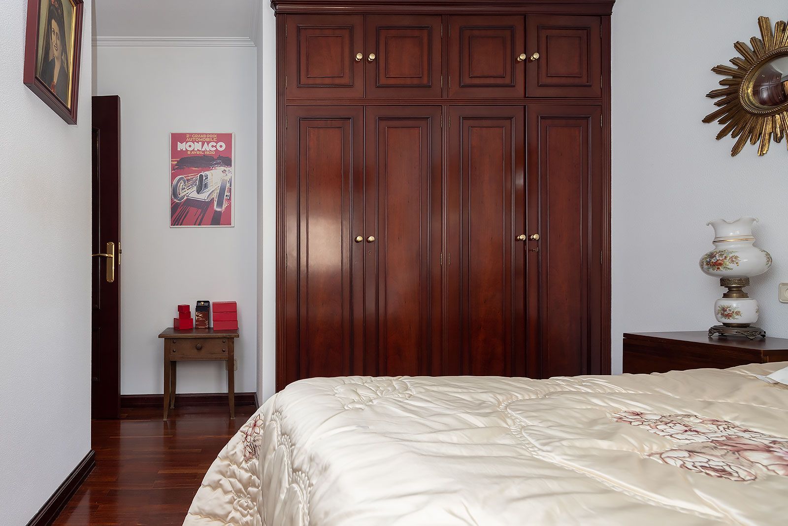 El piso dispone de plaza de garaje y trastero en el propio edificio y está distribuido en un amplio y luminoso salón comedor, una cocina independiente amueblada y equipada con lavandería anexa, además de cuatro completos dormitorios y dos baños, uno de ellos en suite con el dormitorio principal. La vivienda y el edificio, con treinta años de antigüedad, se encuentran en buen estado, disponiendo de calefacción individual eléctrica, suelos de parquet y carpinterías interiores de madera, exteriores con doble ventanal de aluminio, armarios empotrados en todos los dormitorios, video portero, puerta blindada, etc.