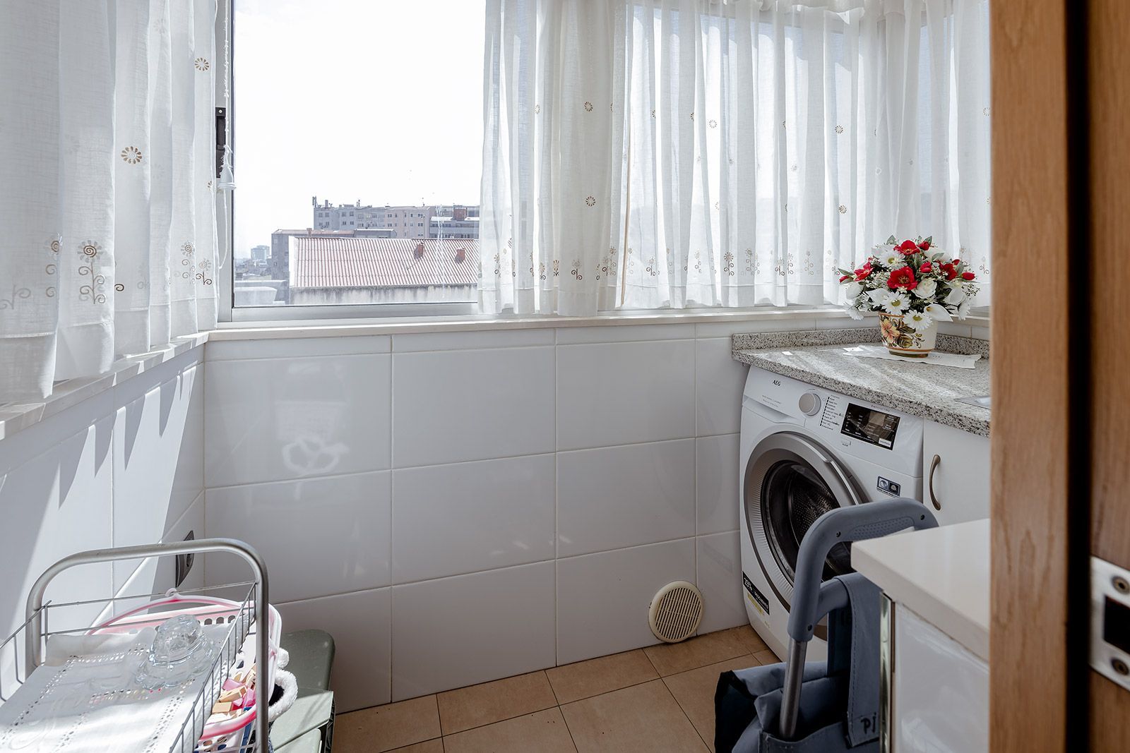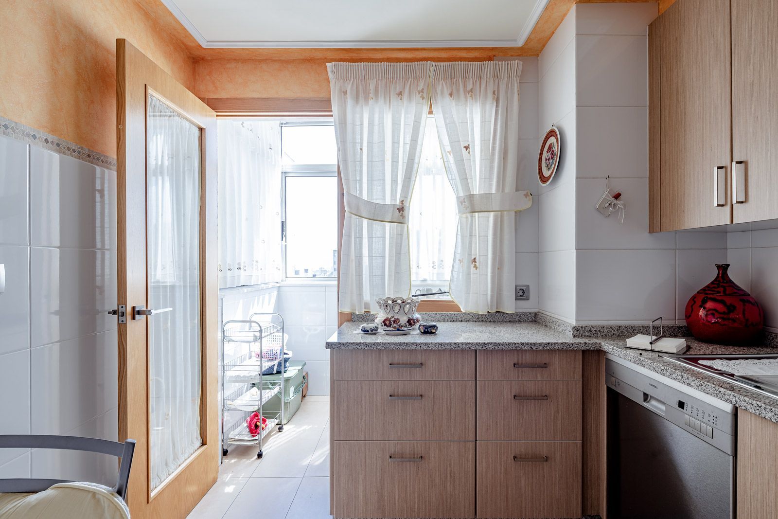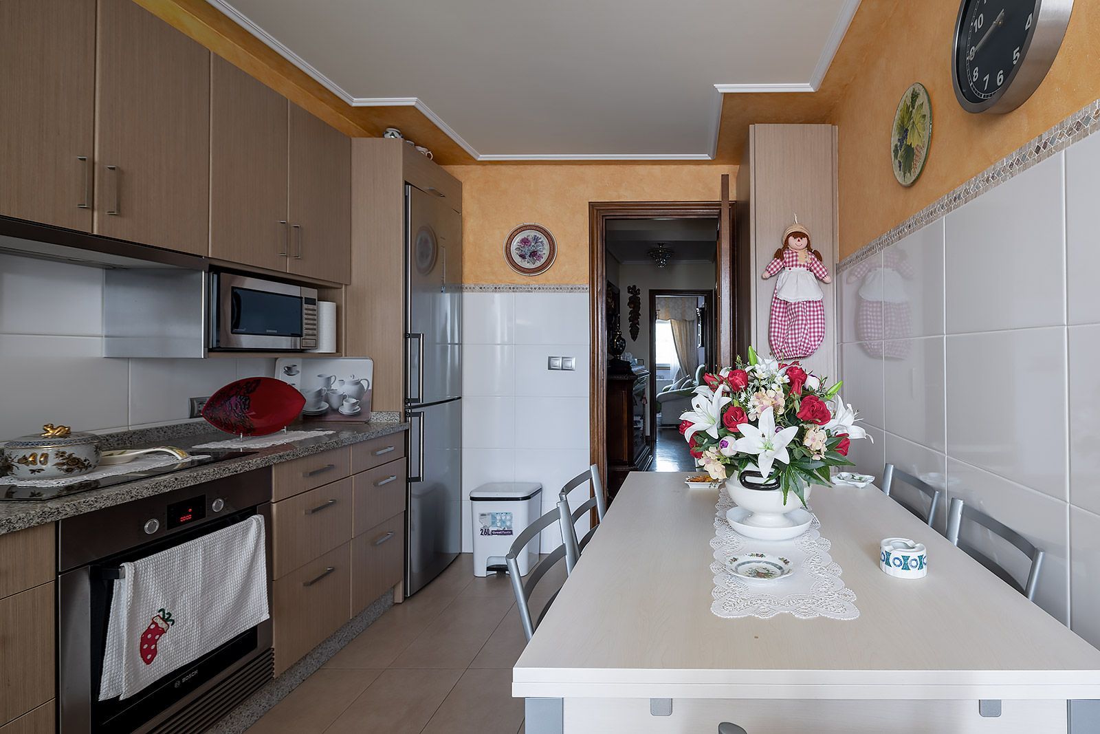 Piso distribuido en salón comedor, dormitorio principal con baño en suite, y un segundo dormitorio con luces a Rda. Outeiro, baño completo de invitados en el distribuidor, y cocina con comedor incorporado y tendedero exterior cubierto y un amplio tercer dormitorio con luces al soleado patio de manzana posterior.