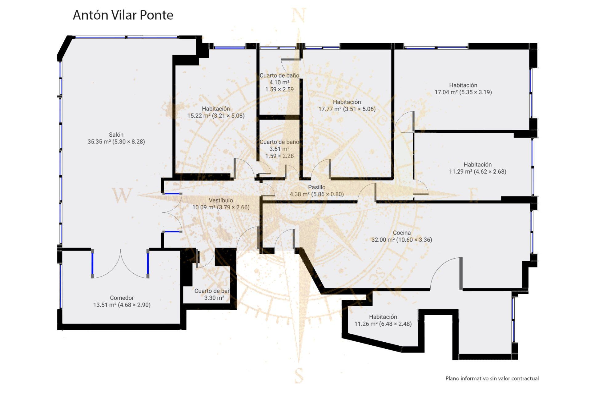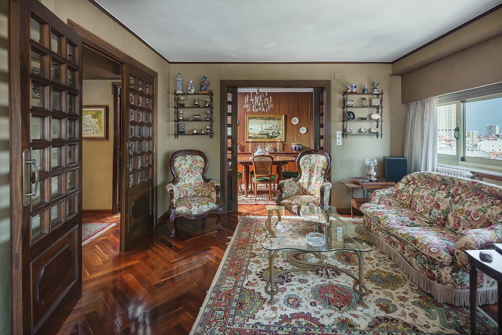 La vivienda dispone de calefacción central, servicio de portería, suelos de parquet, armarios empotrados, ventanas exteriores con doble acristalamiento y climalit, dos entradas, ascensor, portal sin barreras arquitectónicas, etc.