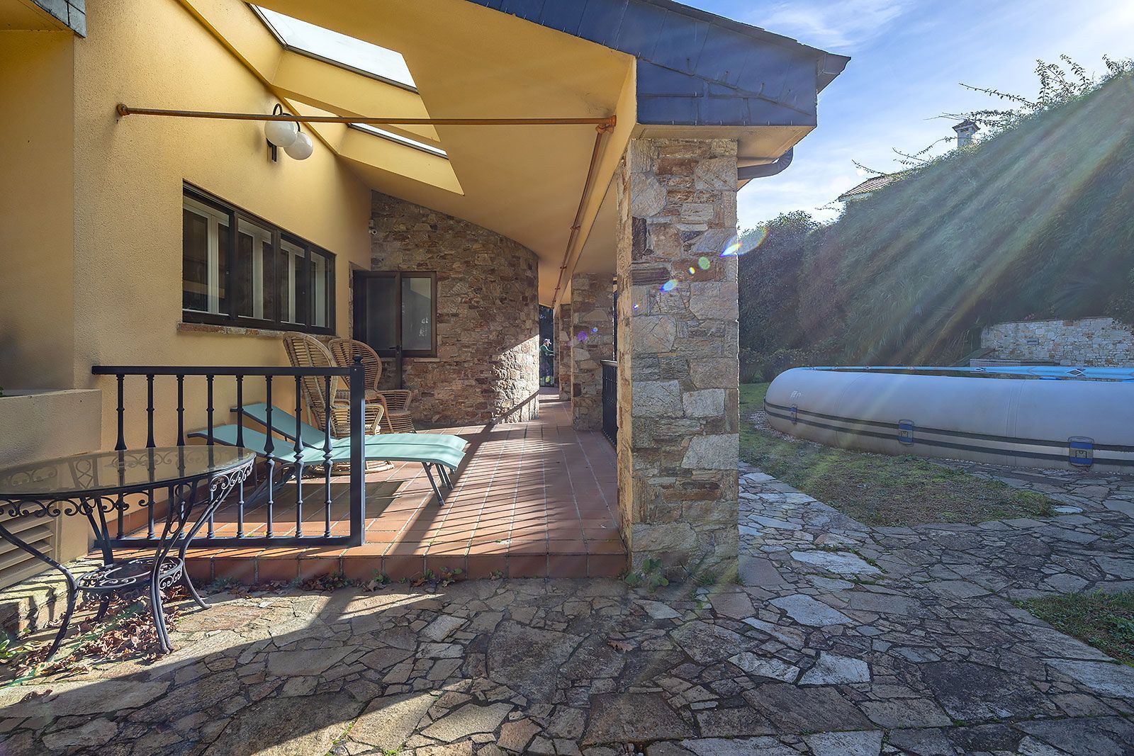 La vivienda, de gran calidad constructiva y en buen estado de conservación, tiene en su planta principal un amplio hall de entrada que da acceso por un lado a un gran salón con chimenea, zona de comedor y de bar, además de acceso a una terraza exterior y grandes ventanales al mar. Comunica el comedor con la moderna y bien equipada cocina, renovada hace pocos años, con una despensa anexa, un aseo en su zona de acceso y su propia entrada desde el porche exterior de la casa que protege toda la fachada de la vivienda tanto de las inclemencias en invierno como de las largas horas de sol en verano.