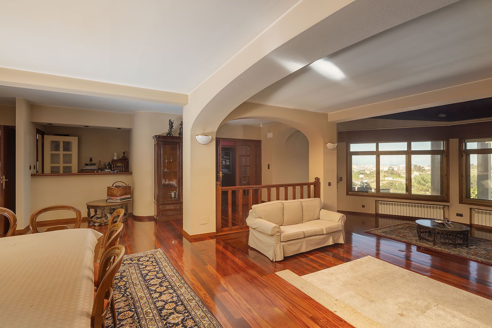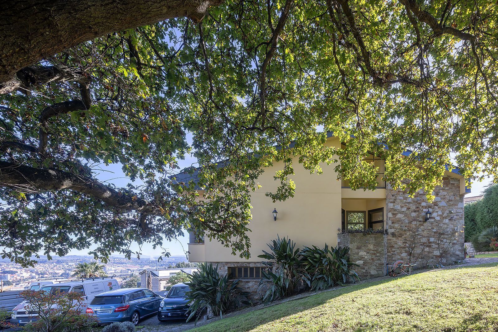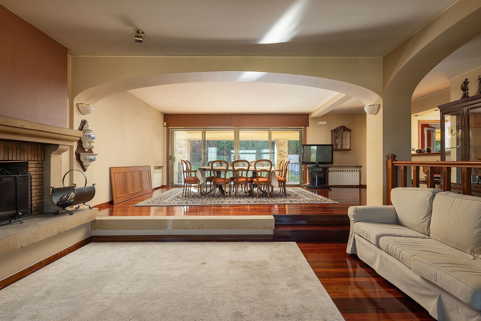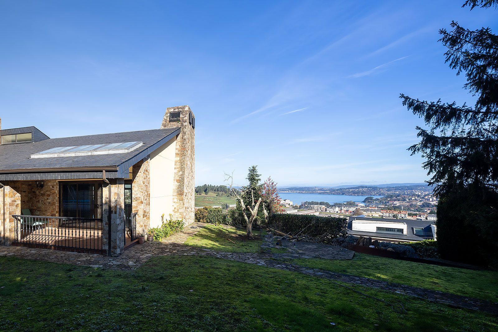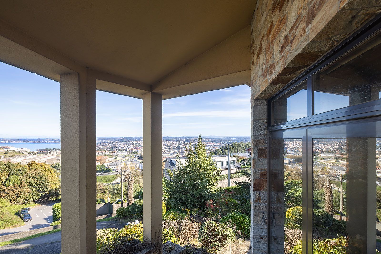 Chalet unifamiliar individual con 350 m2 en planta baja a los que se suman 243 m2 más en una segunda planta baja de cota inferior, para un total de casi 600 m2 construidos en una parcela privada ajardinada y cerrada con espectaculares vistas al mar y a las costas de Coruña y Oleiros, desde una privilegiada ubicación en la falda de A Zapateira, la zona residencial de más alto valor de la ciudad, totalmente consolidada, con todos los servicios urbanos, a 10 minutos del centro de la Ciudad, orientada al Sur y protegida del Norte.
