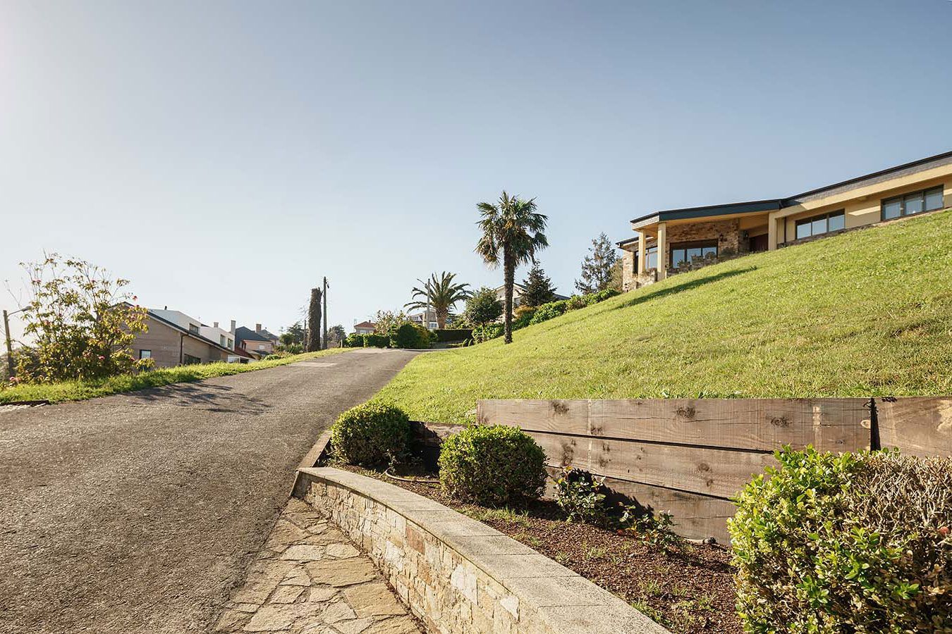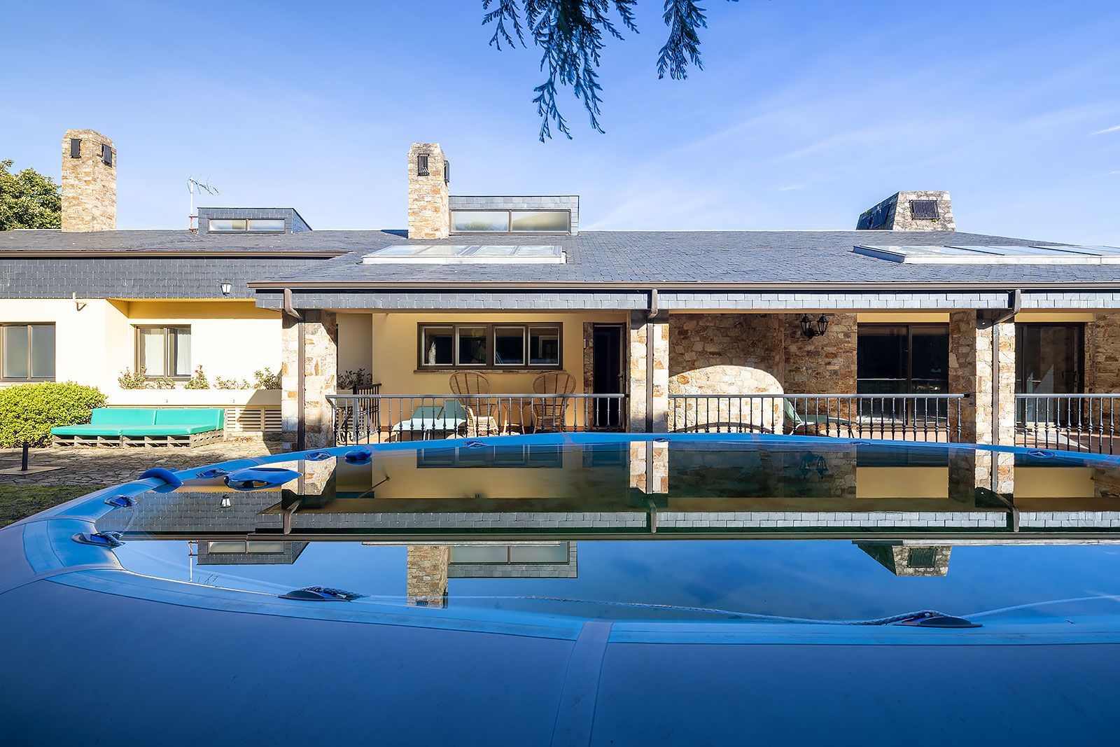 La parcela exterior de 2.400 m2 tiene su acceso a través de un amplio portalón mecanizado, y está totalmente cubierta con cámaras de visión y control remoto desde la propia vivienda. Tiene una amplia explanada pavimentada frente a las entradas del garaje, una piscina con bomba de calor, en su parte más privada, y diversas zonas ajardinadas con arbolado que proporciona protección solar y privacidad hacia el entorno.