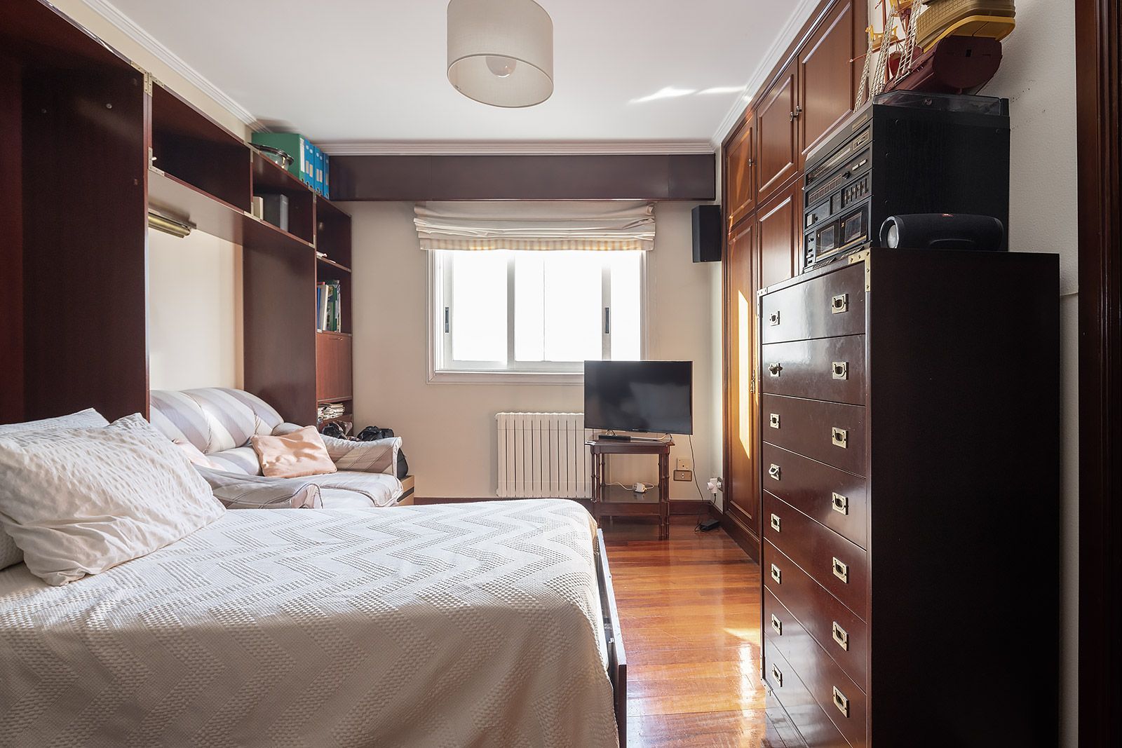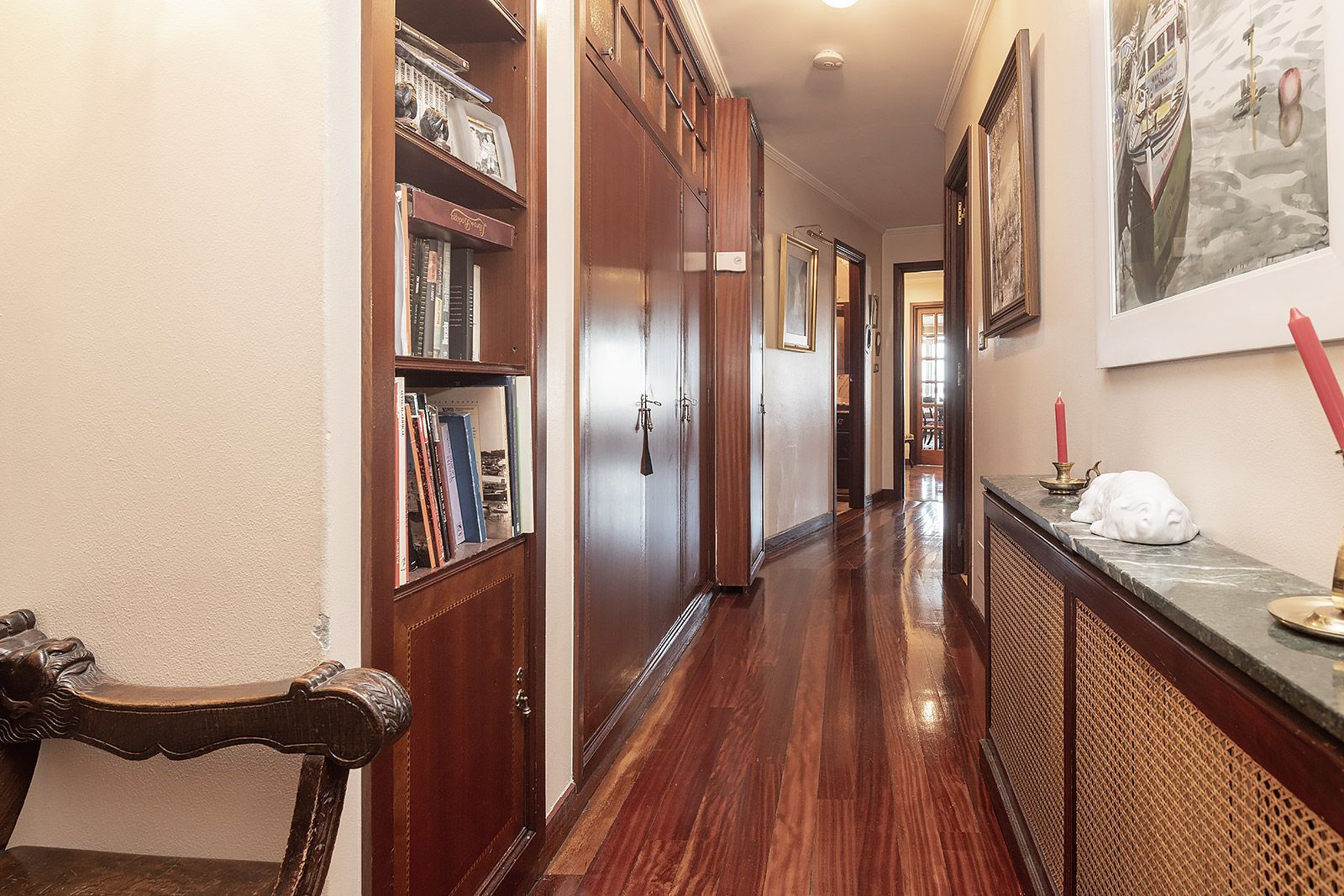 El inmueble, en muy buen estado de conservación, dispone de calefacción individual, doble ventanal en toda la vivienda, suelos de tarima de madera, armarios empotrados en dormitorios, hall y distribuidores, iluminación empotrada, puertas de seguridad, etc.. Además cuenta con una plaza de garaje en el sótano del propio edificio con acceso directo desde el ascensor y un trastero de 16 m2 en el bajo cubierta del mismo.