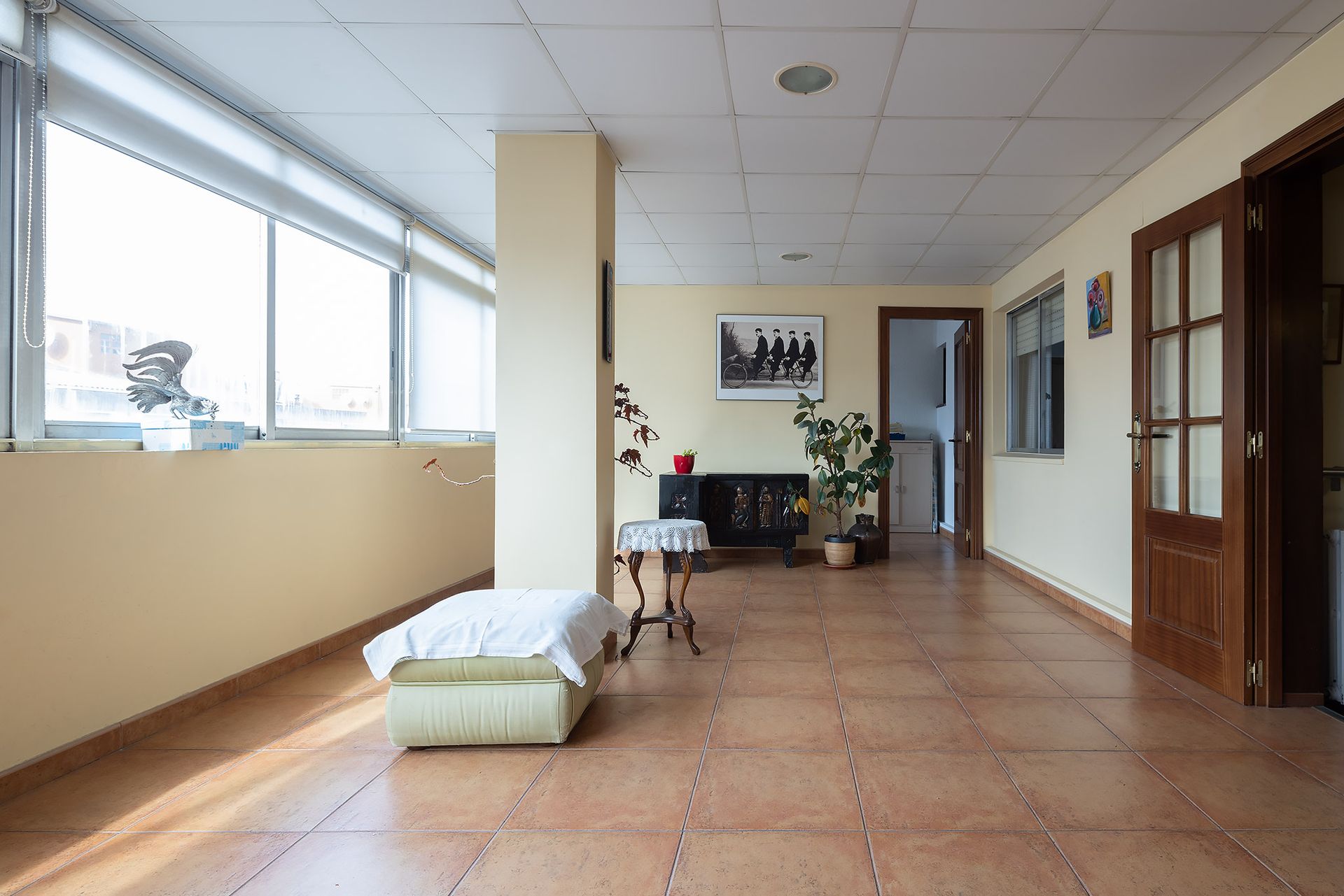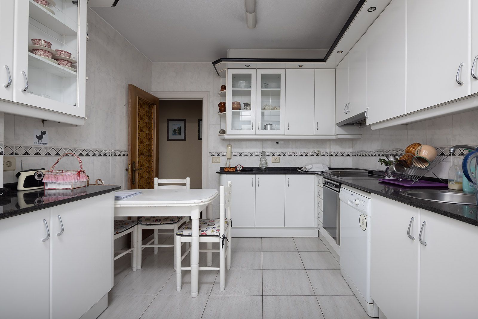 Vivienda de 210 m2 en novena planta de edificio en buen estado, dotado de ascensor y libre de barreras arquitectónicas, con dos plazas de garaje en el sótano del edificio con acceso a través del ascensor.