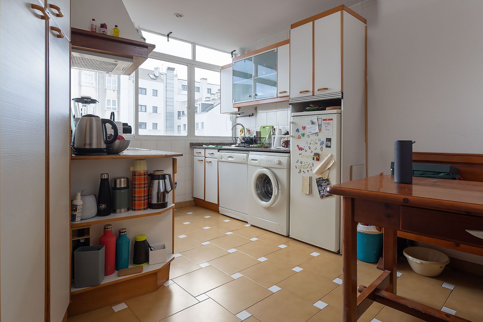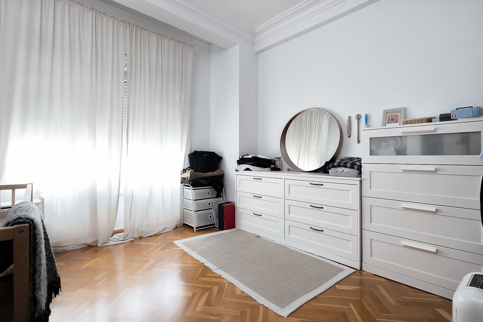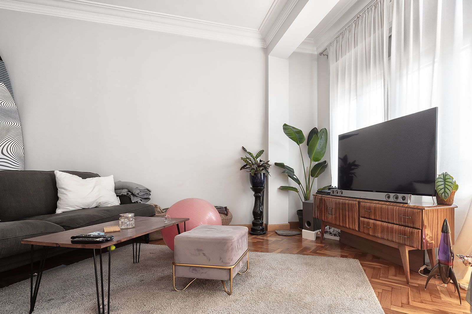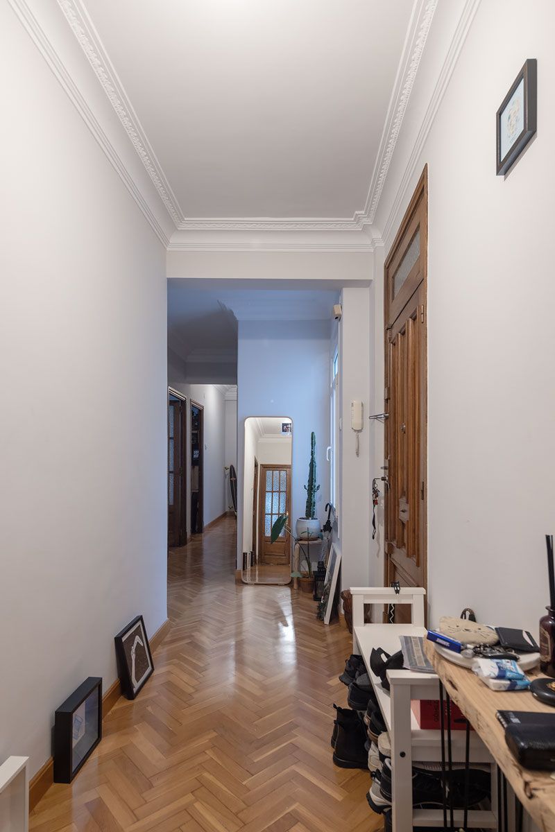 Piso muy bonito de techos altos con molduras en escayola, amplios ventanales, cuidadas carpinterías interiores de madera, y vistas al puerto y la ciudad. Distribuido en salón comedor, cocina independiente, tres dormitorios y un baño (dos originalmente).