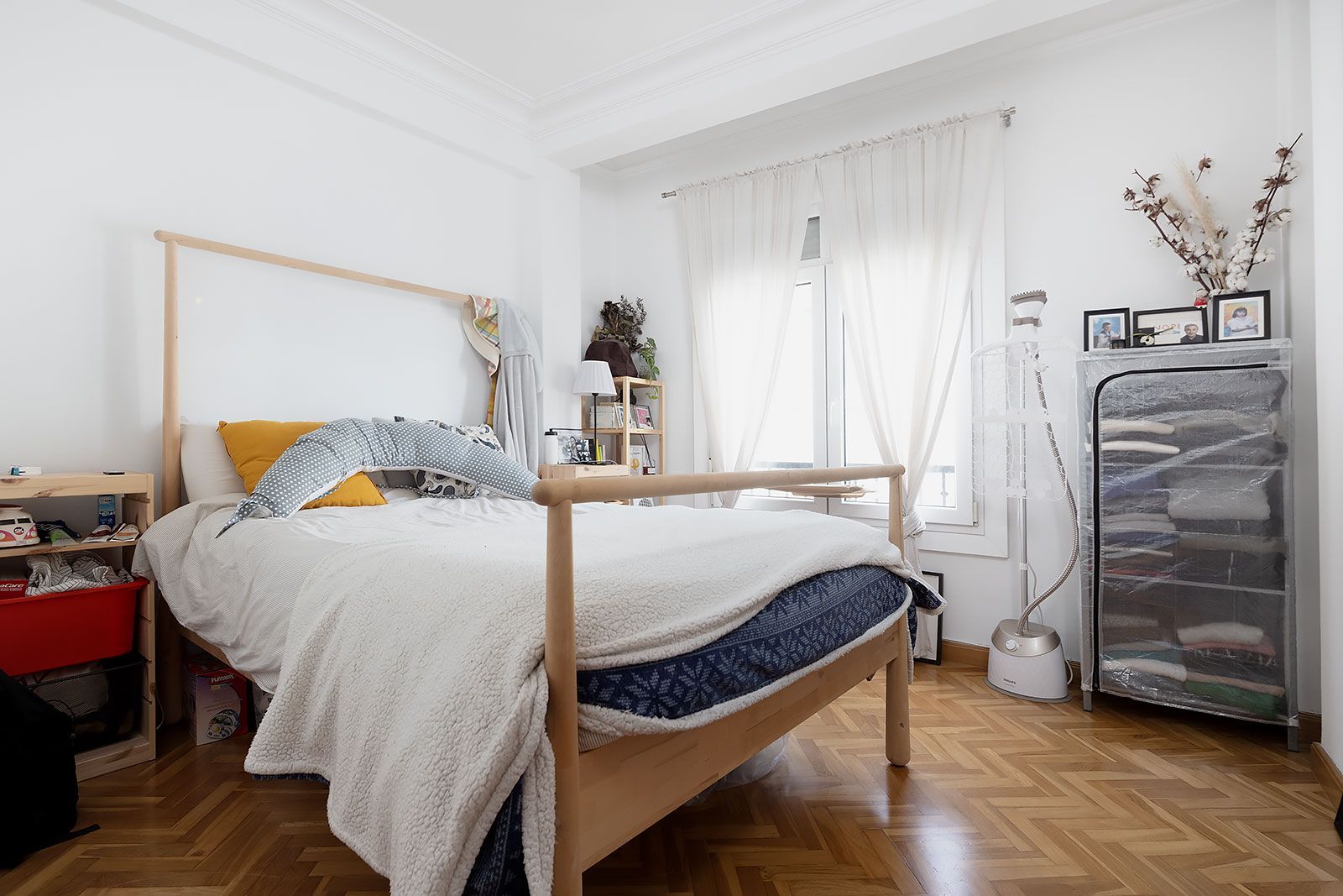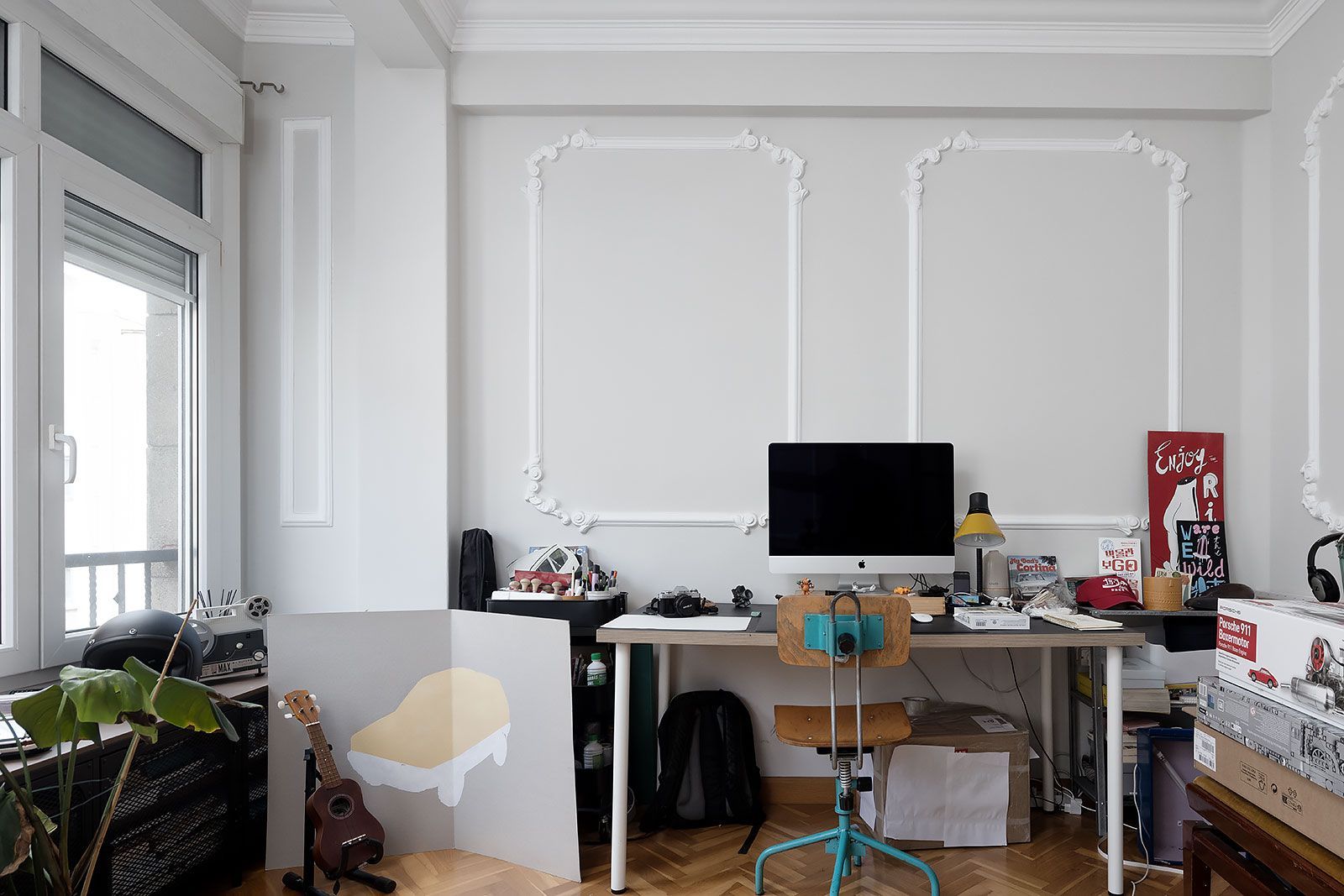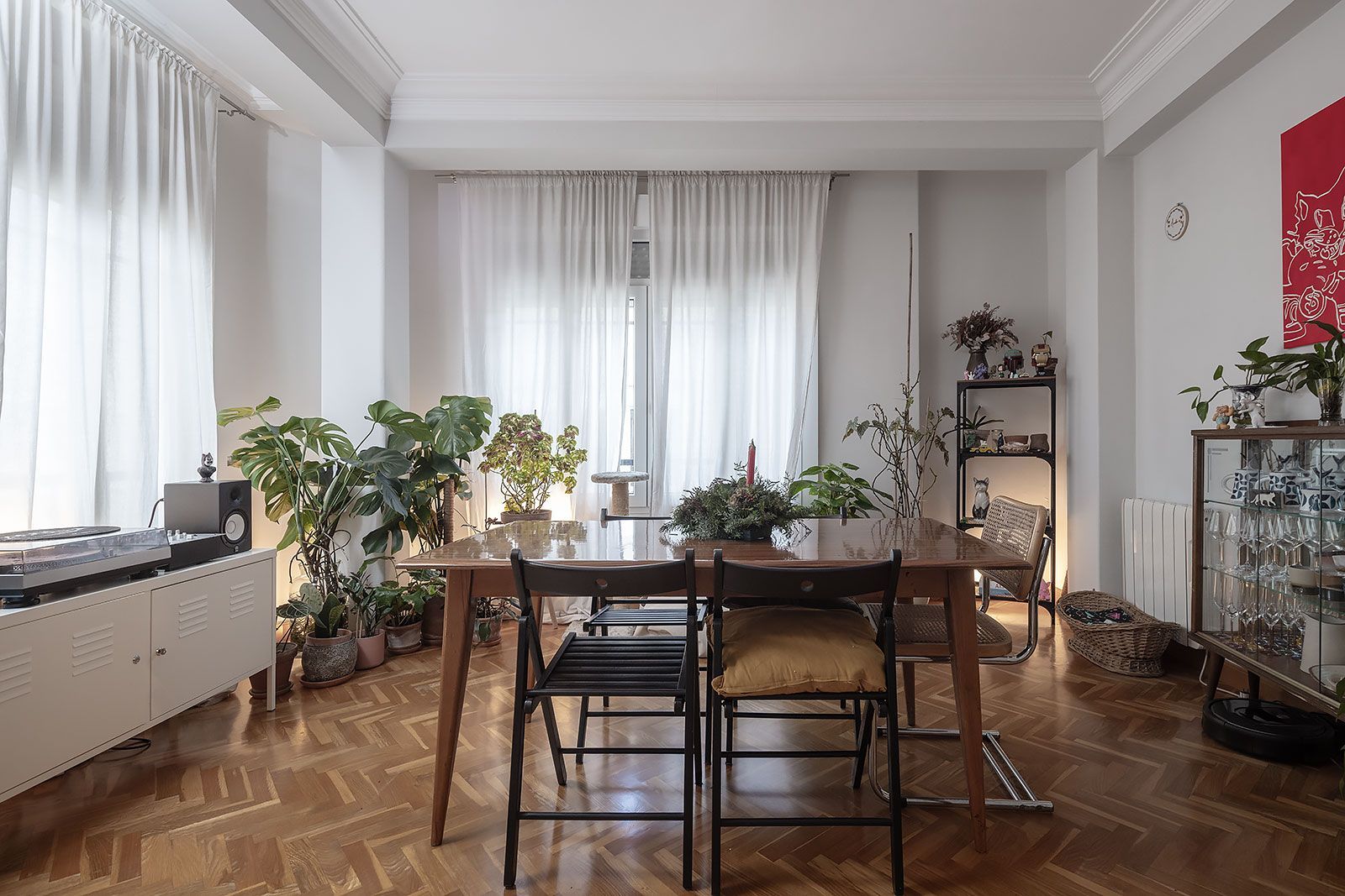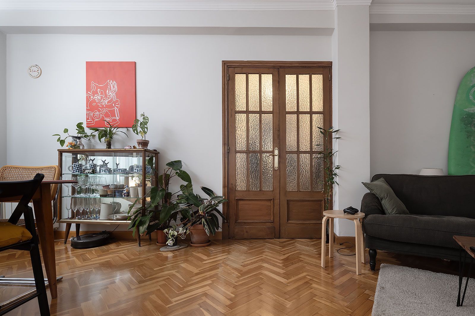 Piso muy bonito de techos altos con molduras en escayola, amplios ventanales, cuidadas carpinterías interiores de madera, y vistas al puerto y la ciudad. Distribuido en salón comedor, cocina independiente, tres dormitorios y un baño (dos originalmente).