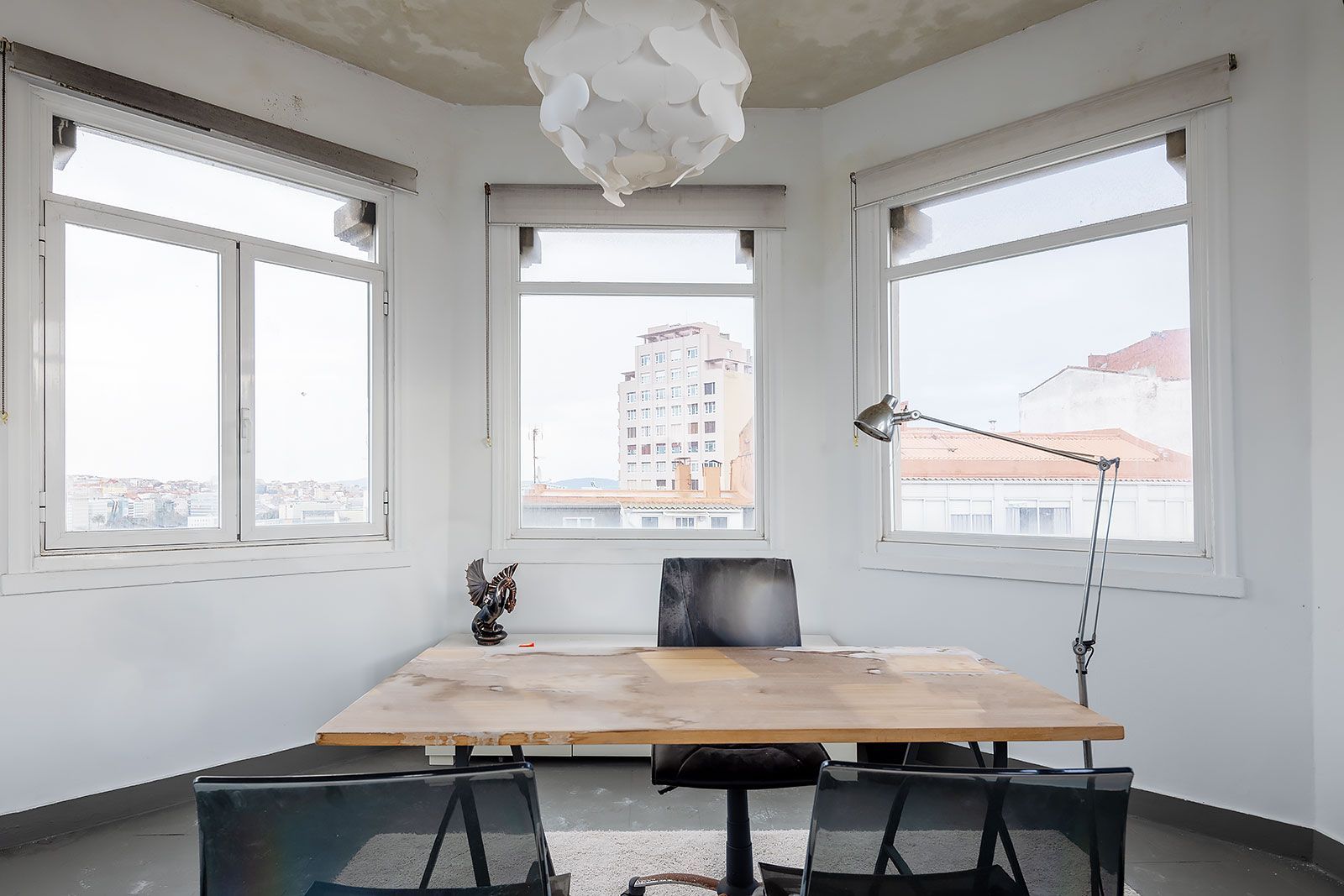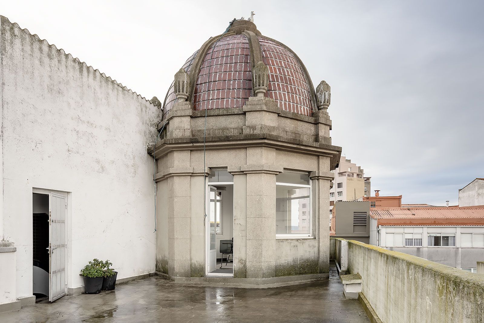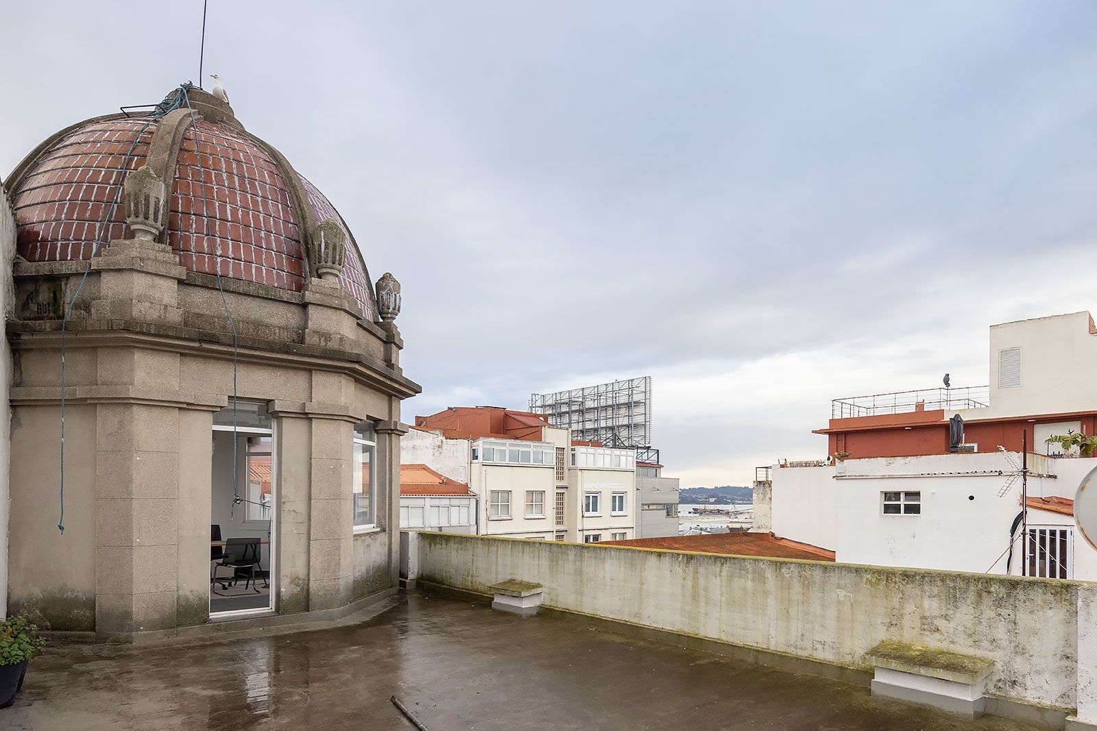 Se añade el torreón superior perfecto para un amplio despacho u oficina de teletrabajo, o cualquier uso residencial, con amplias y despejadas vistas al mar y la ciudad con acceso además a la terraza superior del edificio dotada de bonitas vistas sobre el centro de la ciudad y el puerto de La Coruña.