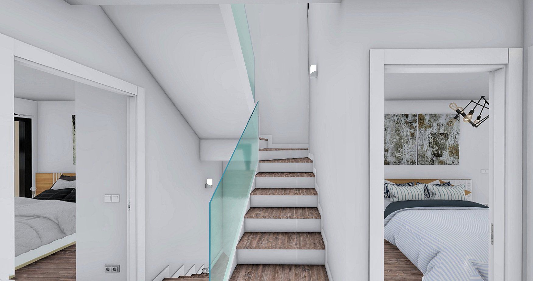 Las viviendas están repartidas en tres pisos, todos ellos con accesos a zonas de exterior, terrazas y jardín privado. Su configuración interior puede adaptarse a diferentes necesidades con la incorporación de despacho, bodega, dormitorio de invitados, etc.