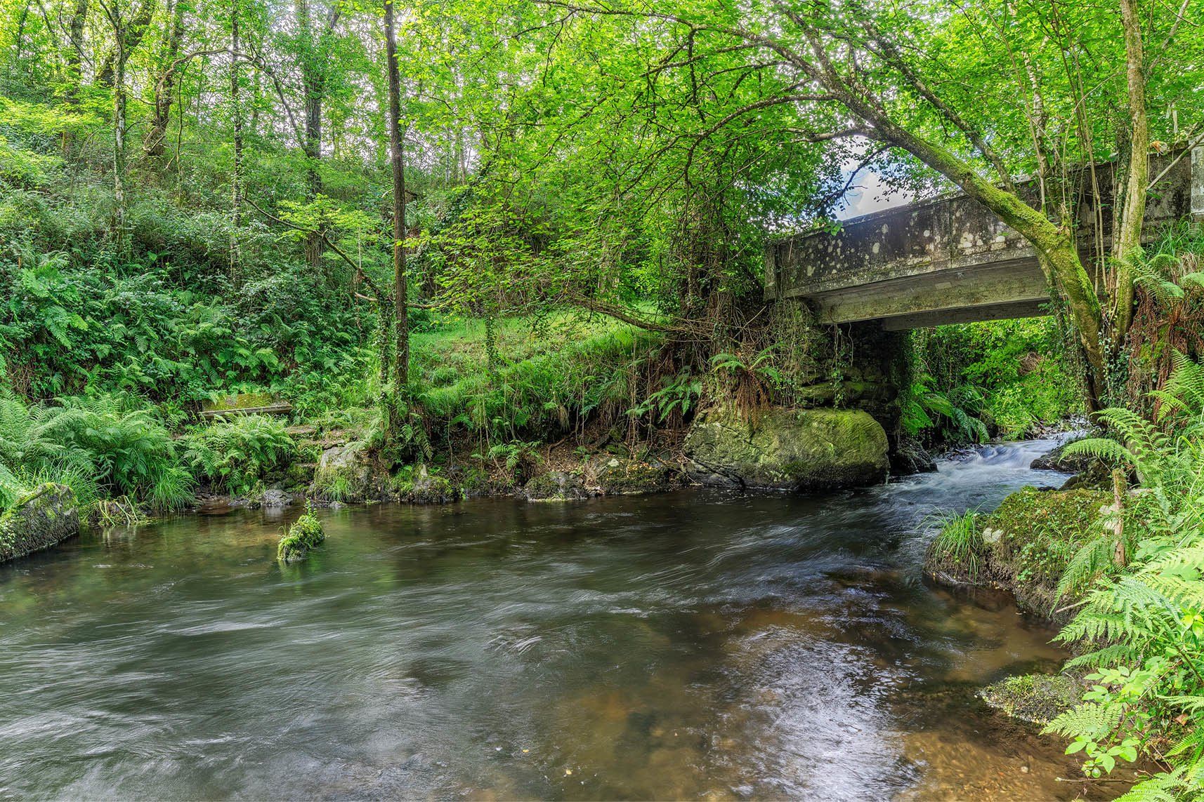 El acceso a la finca es a través de camino privado y la cierra en su perimetro el propio cauce del río. La casa se encuentra en estado de semireforma aunque la recuperación de la mampostería original así como las impresionantes vigas de castaño que sustentan el nuevo tejado son un claro ejemplo del estilo que se le puede imprimir a este extraordinario paraje.