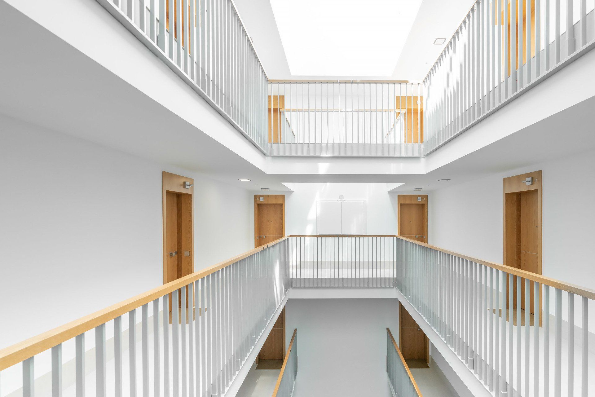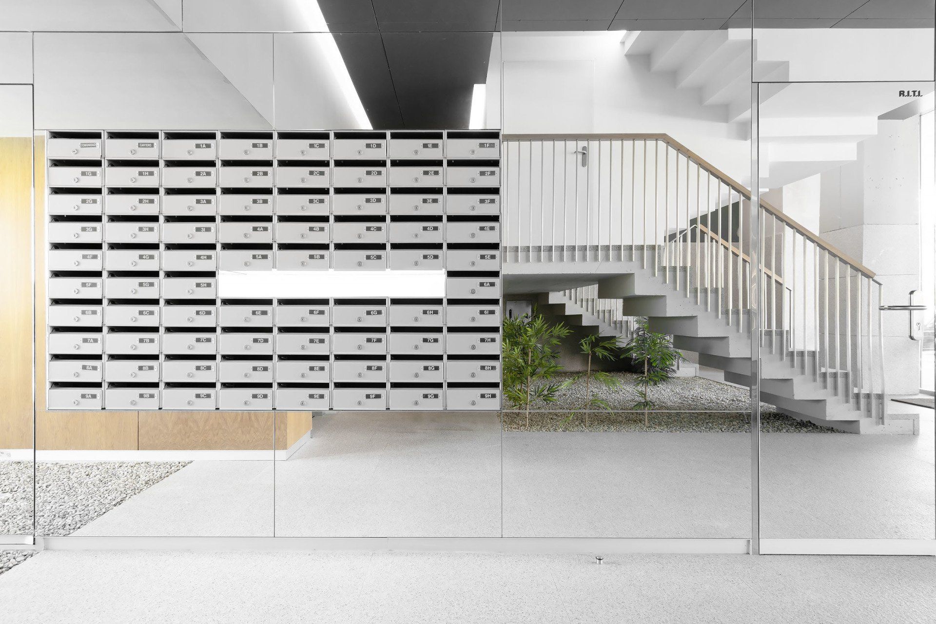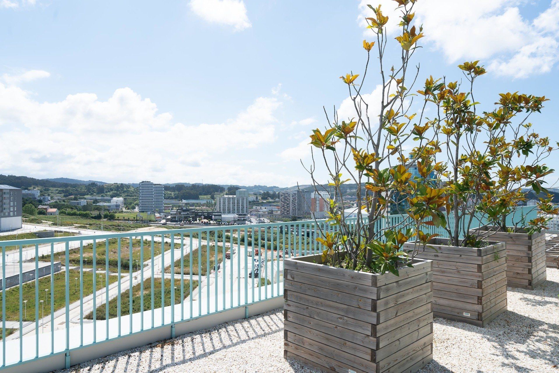 Edificio con calidades excelentes, fachada ventilada y acabado exterior de placas de gres porcelánico de gran formato reforzado con fibra de vidrio, cubierta transitable ajardinada, ventanas y puertas de terraza de aperturas oscilobatiente y osciloparalela respectivamente, con carpintería de aluminio con rotura de puente térmico, acristalamiento de doble hoja 8+12+6 con vidrios de control solar de baja emisividad y persianas exteriores de lamas de aluminio de alta protección solar· Aireadores de ventilación verticales en guía de persiana, tipo AIRCASETE.