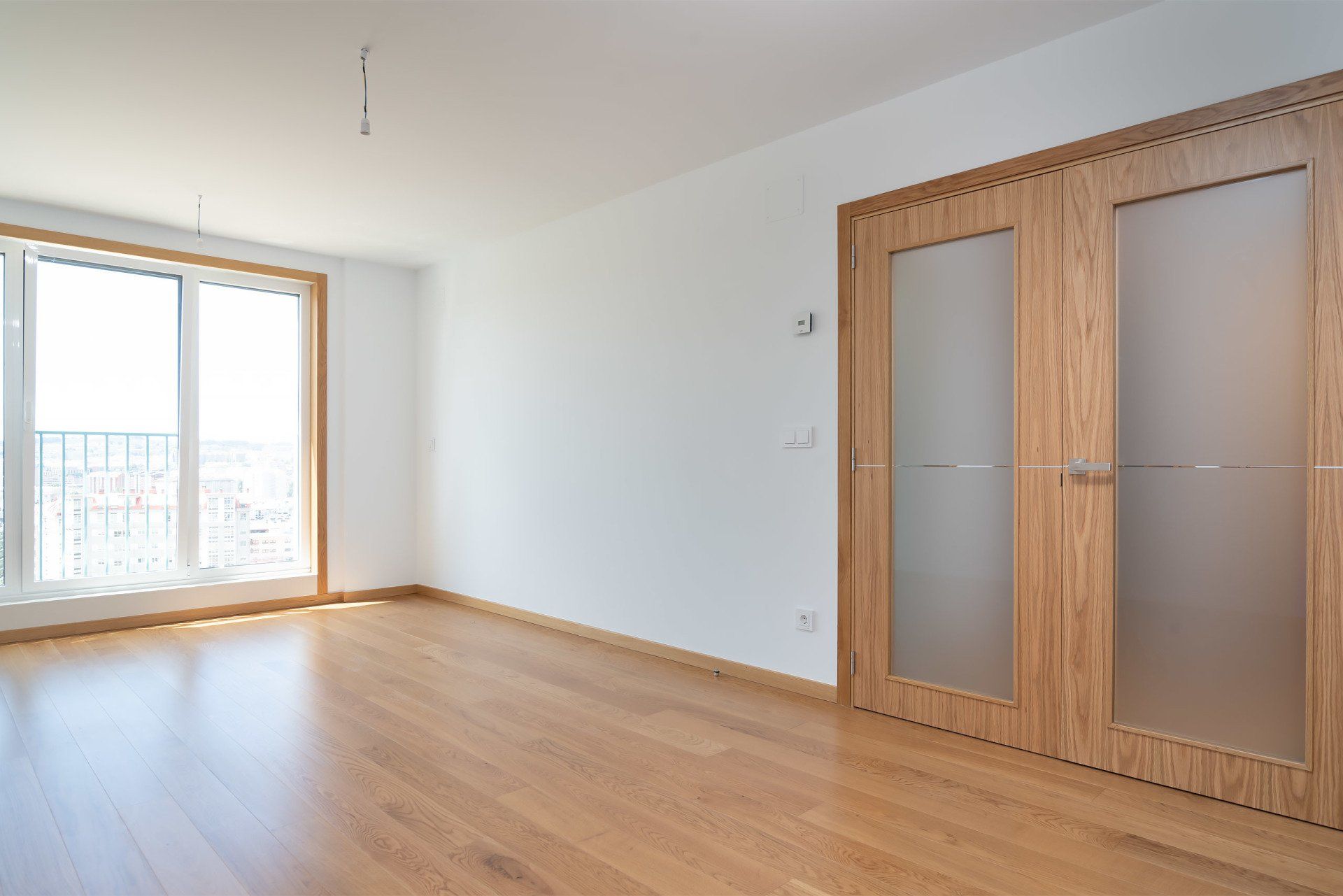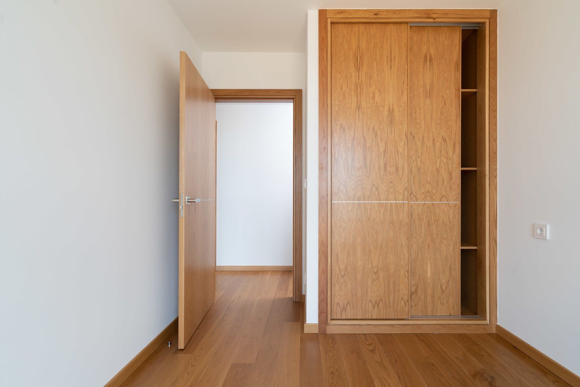 La vivienda posee puertas de entrada blindadas, puertas interiores lisas acabadas en roble americano y puertas correderas por el interior de tabique, entre armazón metálico tipo ECLISSE. Dos armarios empotrados con puertas correderas, armario de almacenamiento general en distribuidor, lacado en blanco y armario en dormitorio principal, barnizado, con interior de estantes, barra de colgar y dos cajoneras.